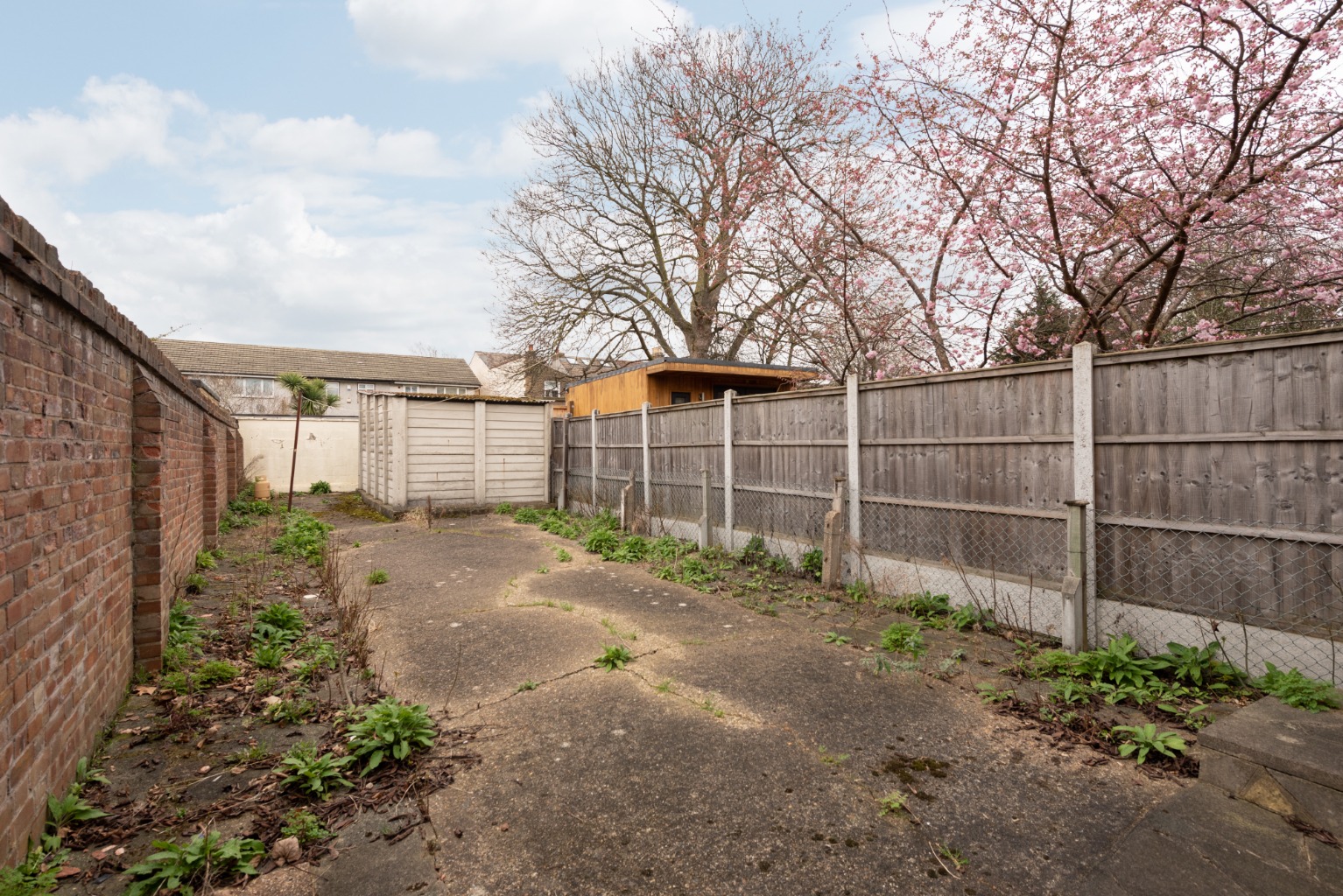 Through the external door, we find ourselves in the side-return area of the rear garden, covered with an external roof which runs in an L-shaped configuration to the rear of the property. If the main through-reception room were to be opened up into the garden, this entire side return area could form the basis of a stunning covered Mediterranean style terrace. The garden, which is larger than normal for this type of property at a massive 50 feet, is currently predominately laid to hard-standing and has the potential to be transformed into a fabulous outdoor family space with room for multiple areas, for relaxing, dining, playing and entertaining. There’s also a large outbuilding at the far end of the garden, which could be retained for a workshop or extra storage space, or could be removed to free up even more space in the garden – and a useful addition of an outside WC. This end of the garden provides a fabulous sunny spot and would be the ideal location for a garden room or an additional seating area – again, the choice is yours!
