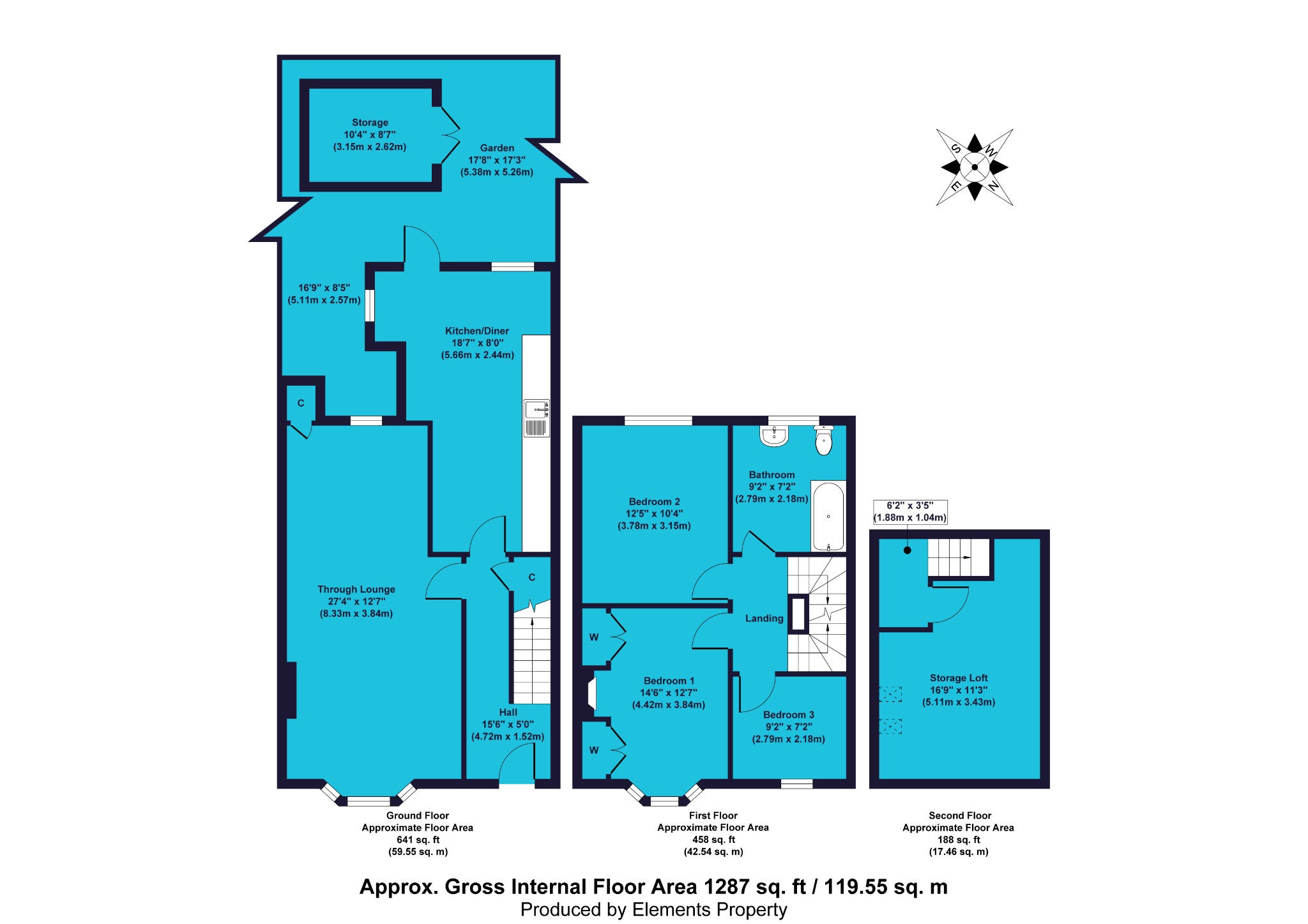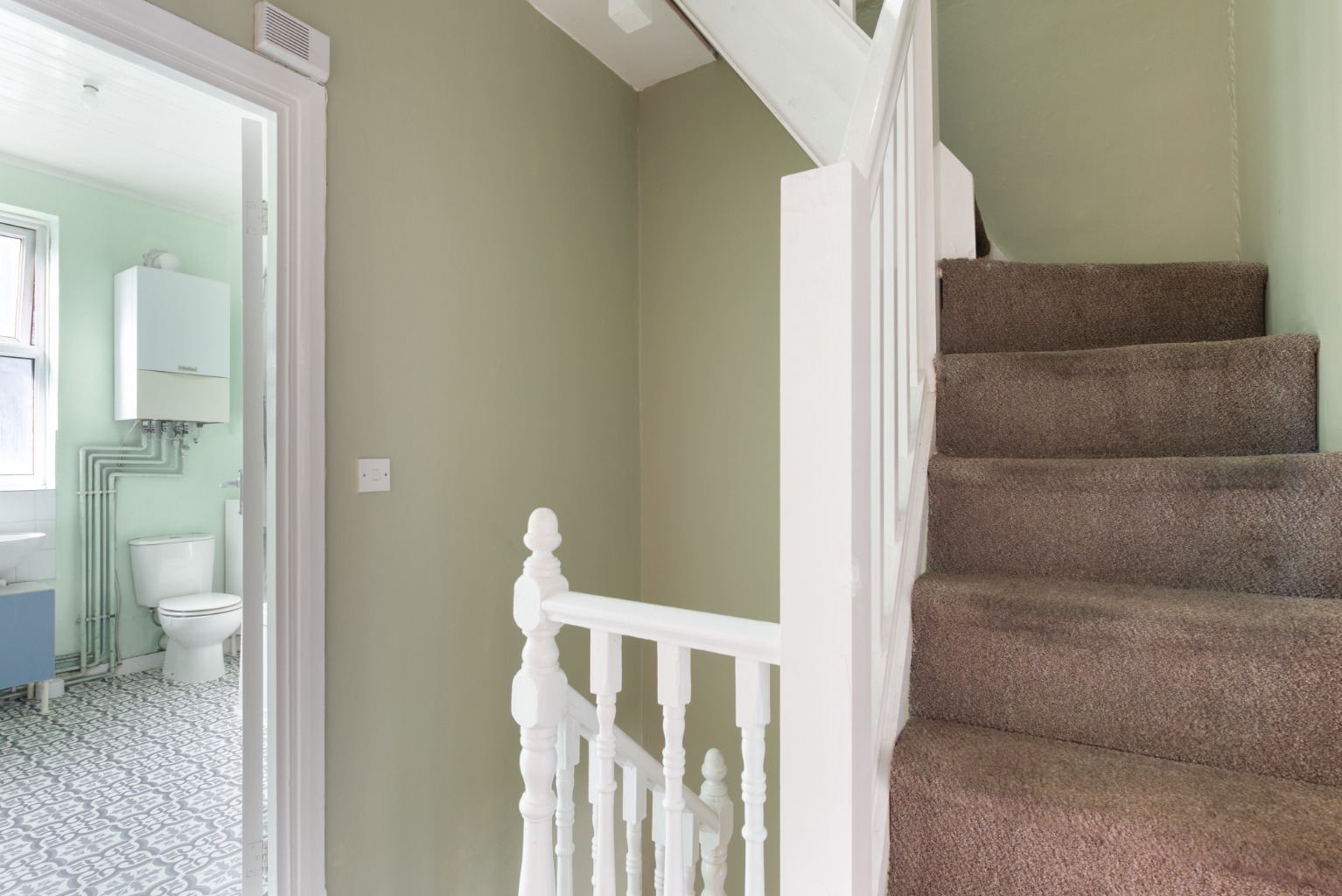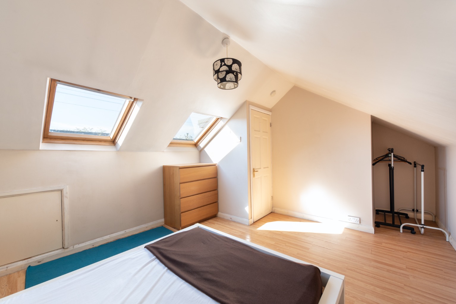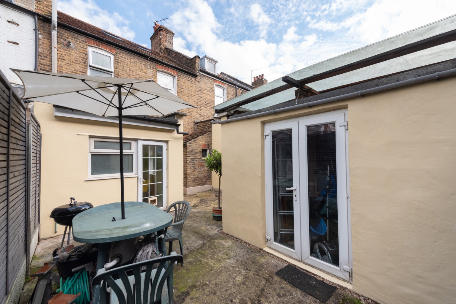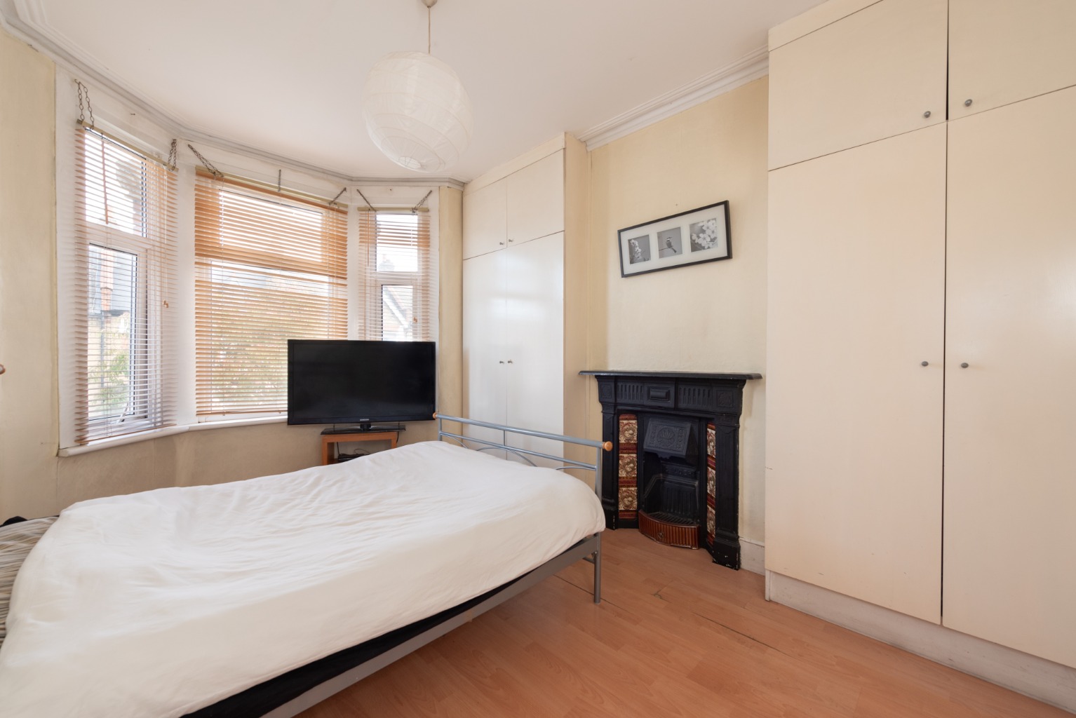 The property is approached through a small front garden which features beautiful original tiles on the path to the front door. There are original architectural features complemented by modern, UPVC windows and front door, with the bright and spacious hallway providing a warm welcome. The large through-reception room boasts a charming bay window and original coving and ceiling roses. There’s also a large window overlooking the rear garden and a useful built-in storage cupboard. At the end of the hallway, the dining kitchen offers a long run of base and wall cabinets, including space for your dishwasher and washing machine. A window looking out to the side return of the garden is the perfect place for a kitchen table for dining and entertaining. Outside, the southwest-facing courtyard garden provides a secure space for relaxing. There’s also a large brick built shed to provide storage. On the first floor, the large family bathroom has a white three-piece suite, new lino flooring, and also houses the gas combi boiler. Bedroom three is a decent sized single room overlooking the front of the property, and the second bedroom is a large double to the rear. The spacious main bedroom has another lovely bay window, as well as a period cast iron fireplace with tiled insets – flanked by built-in wardrobes making the best use of the alcoves. From the landing a second staircase leads to a very useful and spacious storage room which has two rooflight windows. The property is located in an area which boasts exceptional amenities, being centrally located between Leytonstone High Road, Leyton High Road and the popular pedestrianised Francis Road area – all of which offer a vast array of independent shops, cafes and restaurants, as well as supermarkets and retail parks nearby. On the doorstep, you’ll find some great hospitality options such as Unity Café, Filly Brook, Arch Deli and the Heathcote and Star pub. There are excellent transport links, with Leytonstone Central Line tube station less than a ten minute walk and Leyton Midland Road Overground station less than fifteen minutes. Some of London’s best green spaces are close by, including Hollow Ponds, Wanstead Flats, the Queen Elizabeth Olympic Park and Hackney Marshes. Leytonstone Leisure centre, with its gym, swimming pool and fitness classes is a fifteen minute walk.