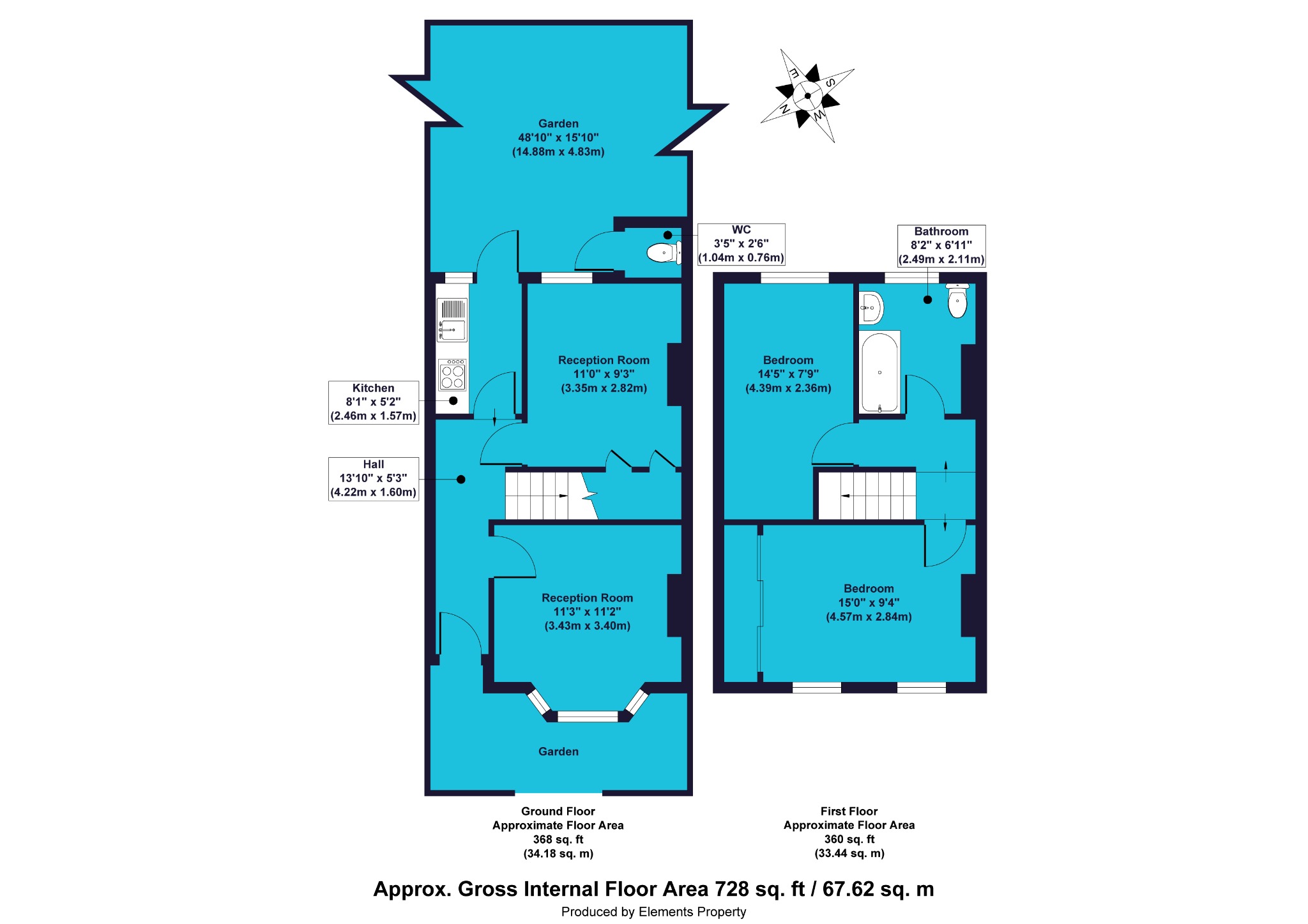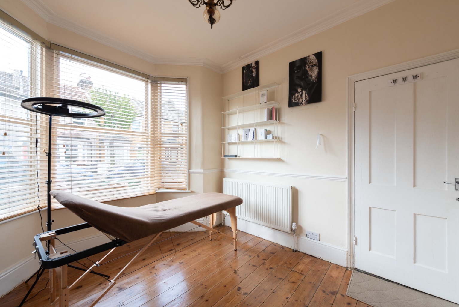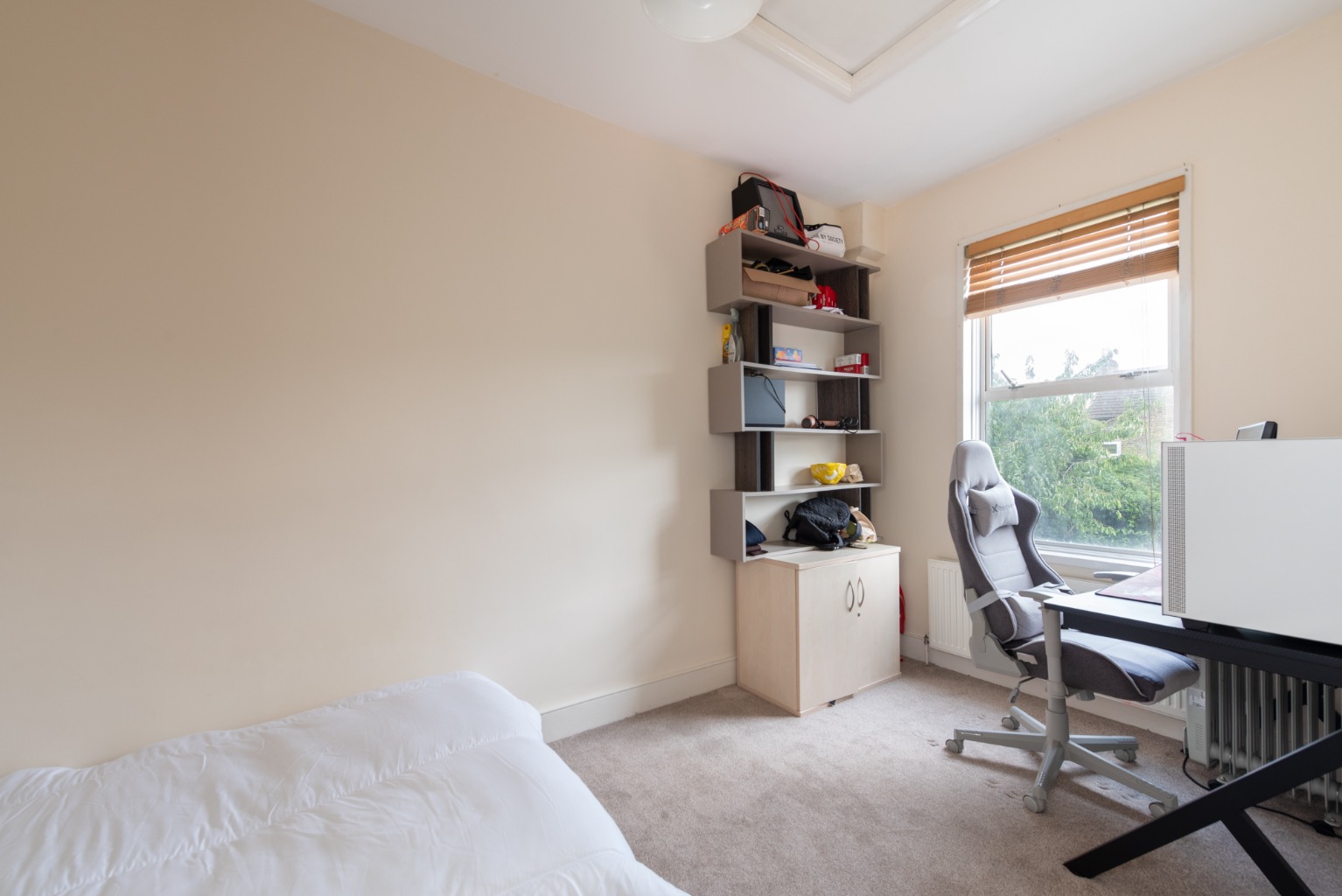 Bedroom two overlooks the rear garden, providing all day sun, making this a warm, comfortable retreat. Bedroom one spans the full width of the property and has twin windows to maximise the natural light and the views out to the street. There’s a full wall of fitted wardrobes and space for a double bed and your choice of free-standing furniture.