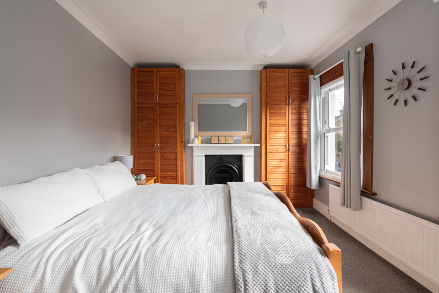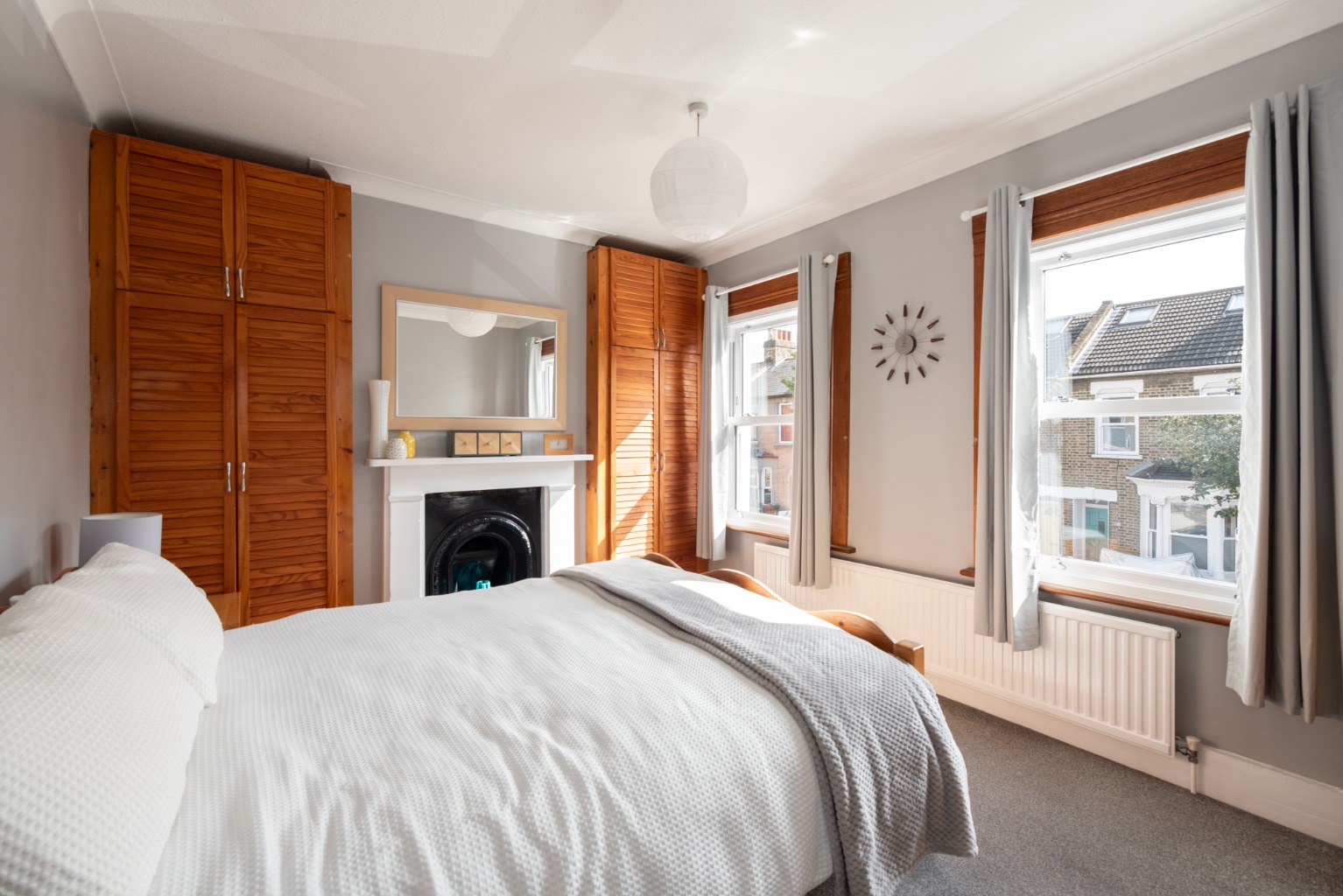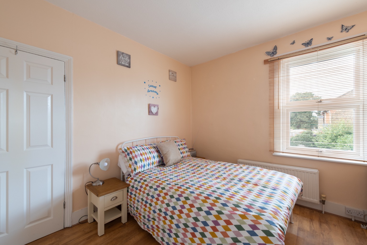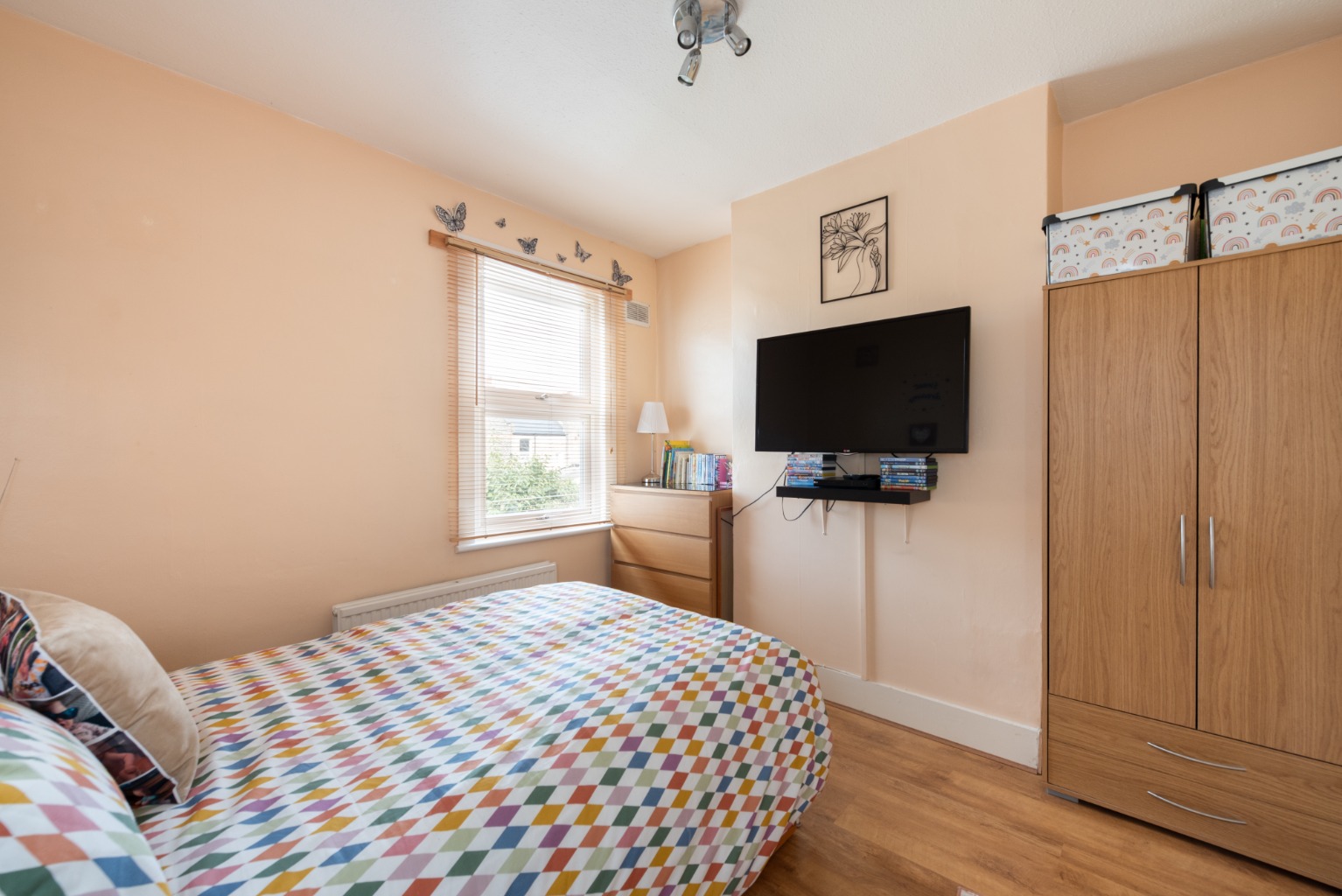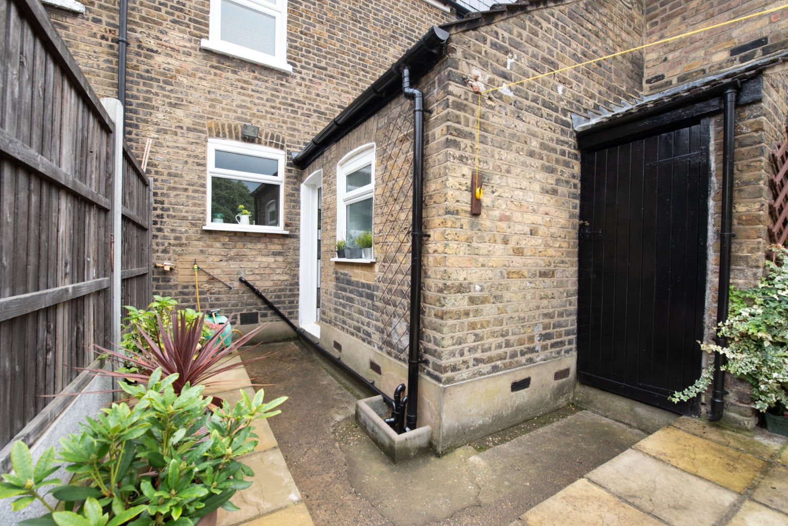 Set away from the street with a small paved yard, the attractive front door with arch above and stained glass feature opens into the hallway with reception room to the right. In the reception you’ll note the natural light entering through the bay window – which, with its wooden framing, perfectly complements the rustic door and wood-effect flooring and mantelpiece, with its cosy wood-burner effect fire. Next is the smart and stylish kitchen-diner, with a lovely spacious feel thanks to the open, integrated staircase. The kitchen offers a good range of base and wall cabinets in white, contrasted with the dark wood-effect worktops and lighter toned flooring. There’s space for all your appliances and extra storage, plus a good sized dining table for eating and entertaining. The window above the sink offers views to the garden beyond. Heading on, you enter a small lobby area with a handy storage cupboard and doors to the bathroom and garden. The bathroom is fitted with a white suite consisting of WC, sink with unit below and mirror above, and a bath with integrated shower and screen. The clean, crisp white tiles are contrasted with black trim and floor tiles. Into the garden, the side-return path and planted border leads to a useful exterior storage cupboard, before stepping up onto a paved area. This opens onto a 42ft lawn, with a garden shed and high fences for privacy and security. Upstairs, you have two good sized double bedrooms with integrated wardrobes – bedroom one at the front with its beautiful original fireplace, and bedroom two at the rear, overlooking the side return and garden. The property lies within the well-loved Francis Road area of Leyton, renowned for its small independent businesses in the beautifully preserved pedestrianised area just a few minutes’ walk away. Nearby hospitality venues include Northcote Arms, the Unity Café and the Heathcote and Star pub, plus essential amenities including supermarkets, retail parks and the many shops and supplies available on Leytonstone High Road. Leyton and Leytonstone Central Line tube stations and Leytonstone High Road Overground stations are all less than a fifteen minute walk. This area is also ideal for lovers of outdoor leisure, with some of London’s best green spaces within easy access, including Wanstead Flats, Hackney Marshes and the Queen Elizabeth Olympic Park.