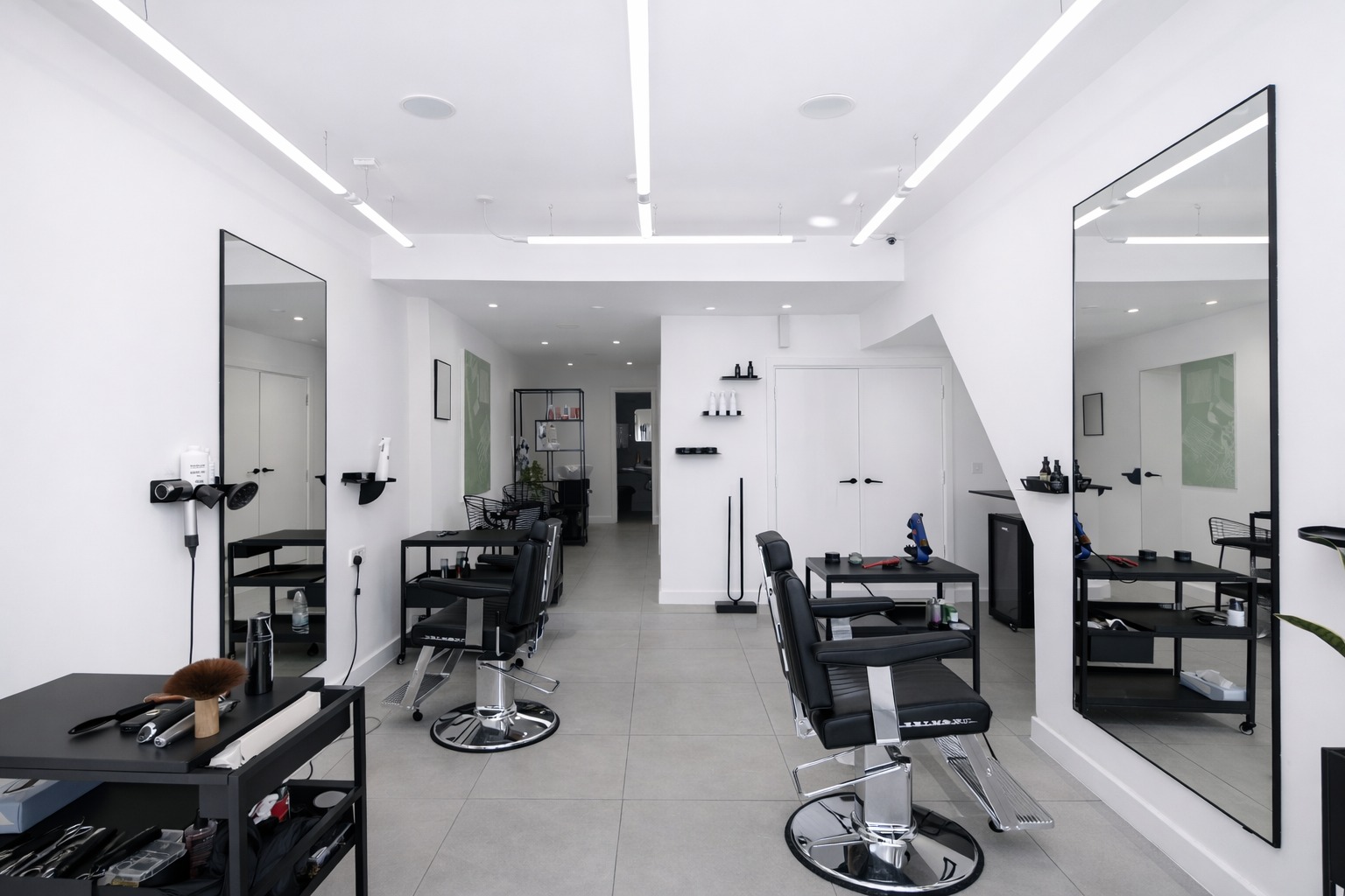 The salon boasts a contemporary and inviting aesthetic, having been recently decorated to a high standard.