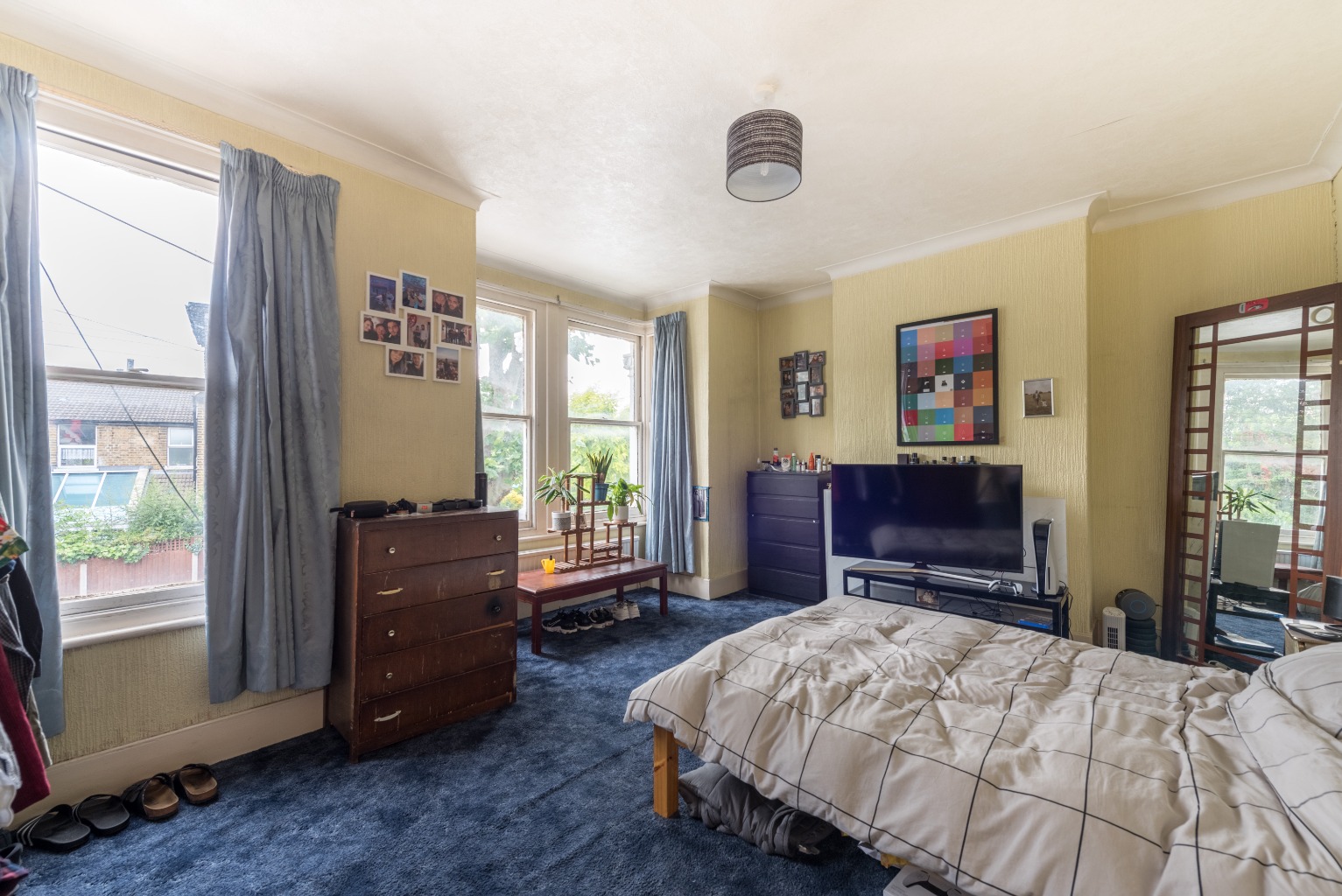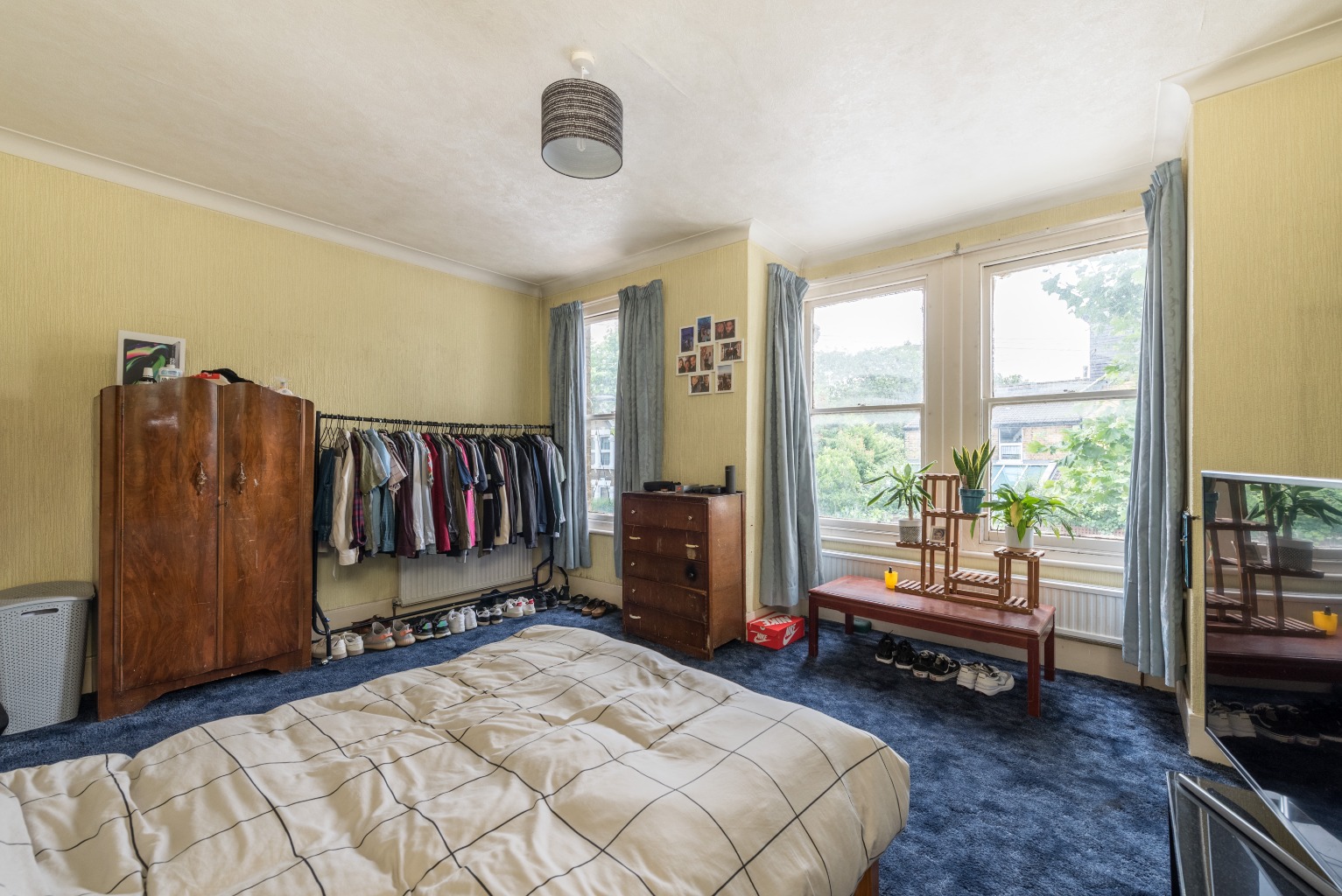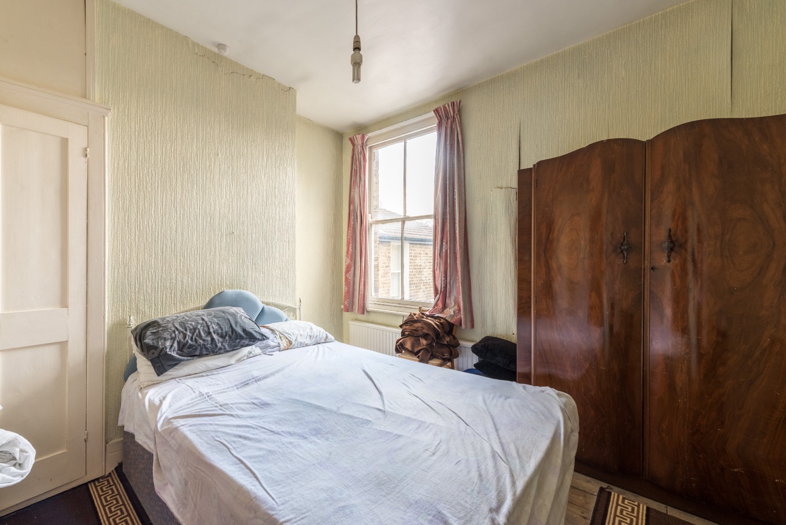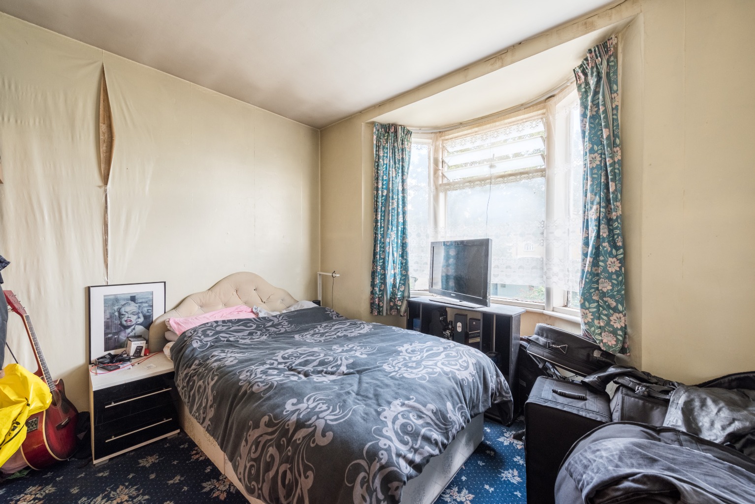 The rear bedroom looks out over the garden through large original bay windows. This would be an excellent kid's or guest bedroom with some modernisation, giving you the opportunity to totally re-imagine the space. There's even the possibility to knock through to the third bedroom to create a teenager's dream hang-out and bedroom in one.