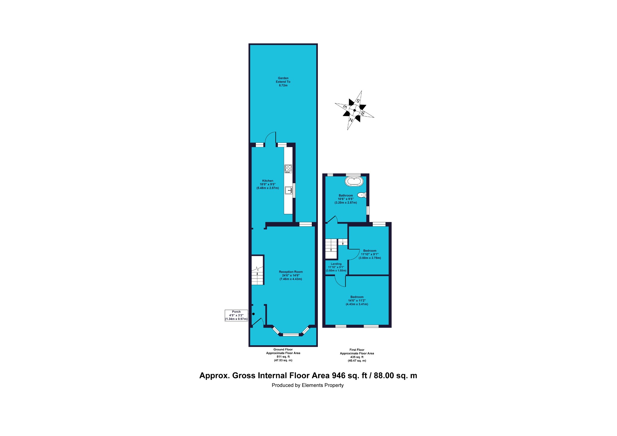 Upstairs are two good-sized double bedrooms; the larger of the two lies to the front aspect, featuring two large windows, and the slightly smaller one looks out over the side return.
