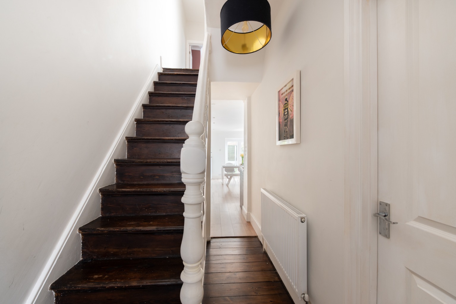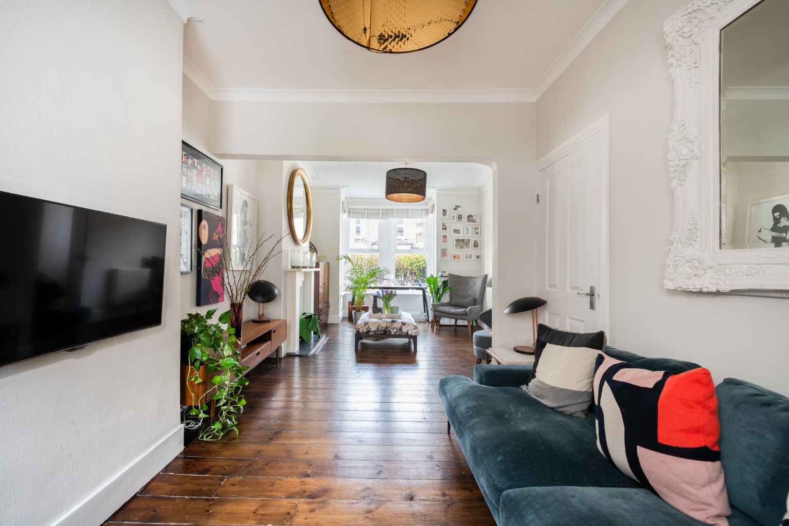 A well maintained, spacious three bedroom terrace house with original features, offered for sale chain-free. There’s a large through lounge, a kitchen diner with access to the rear garden, three double bedrooms, a family bathroom and a cellar. Leytonstone is a popular area, offering exceptional local amenities and travel links. This attractive property is located on a quiet street with residents-only parking and retains original architectural details inside and out. The front porch is accessed via a small garden and the front door leads into a bright hallway with a radiator, modern white decoration and high quality hardwood flooring which features throughout the house. To the right is the impressive lounge with its bay window to the front and a second window looking out to the rear garden. There’s an attractive fireplace and space for a flexible layout, subject to your family requirements.