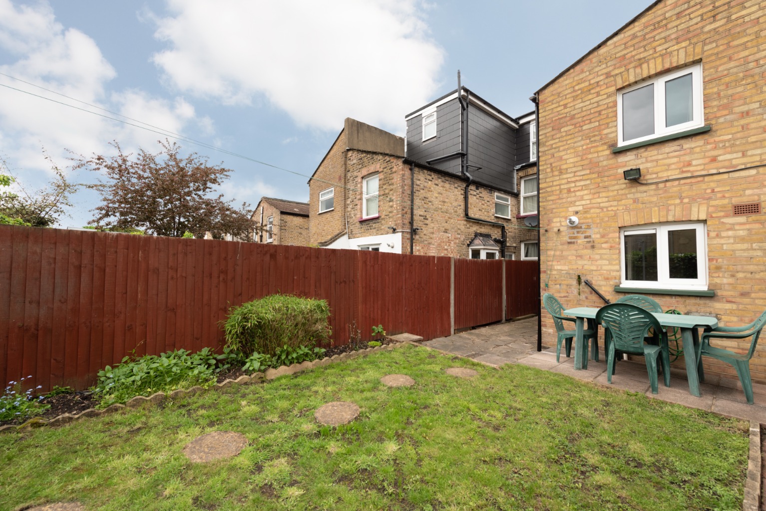 The final space to explore on the ground floor is the garden, which we access through the glazed external kitchen door. The door leads out to the side return area of the garden, which is ideal for storage or would make a lovely, secluded dining or seating area. The main area of the garden has both paved and lawned areas along with planting borders. Being south facing and sheltered by tall fences, this is a real sun trap, perfect for enjoying with family and for inviting friends and loved ones for memorable gatherings.