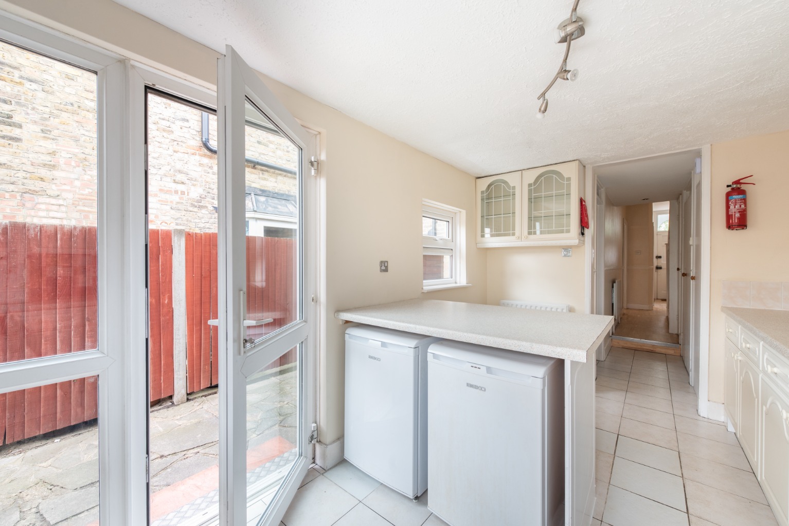 As you approach the property, you’ll note that the residents’ only parking has been laid out in designated off-road bays, giving a spacious feeling to the neighbourhood. Built from classic yellow London stock brick, the house has some attractive original features to the façade. These include a mullioned bay window with intricate columns and arches - the details of which have been highlighted in Green - and a porch entered through a corbelled arch, with highlights in dark green to match the front door. There’s a small front garden that has space for bin storage and offers the potential to be transformed into an attractive cottage garden to provide a fabulous welcome for guests.