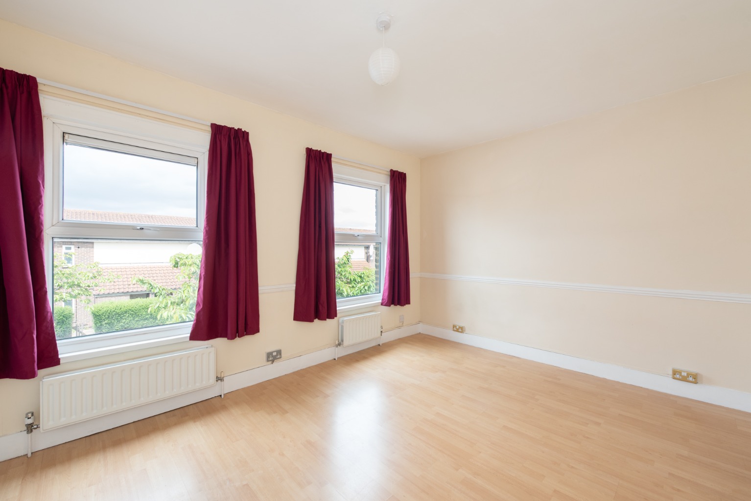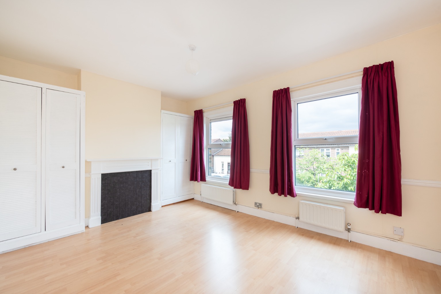 To the left is bedroom two, which is another bright and generously sized double room overlooking the rear garden. There’s plenty of space for a large double bed with bedside cabinets, chests of drawers and wardrobes, with the alcoves to either side of the chimney breasts lending themselves to the option of some bespoke built-in furniture.