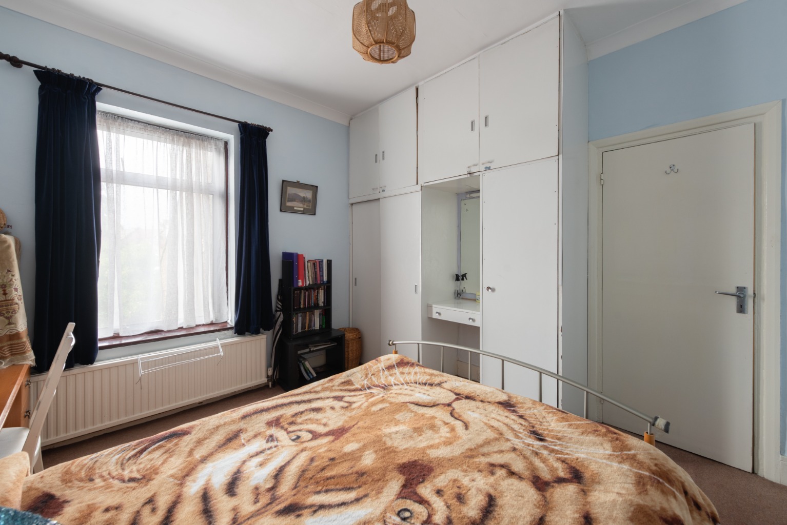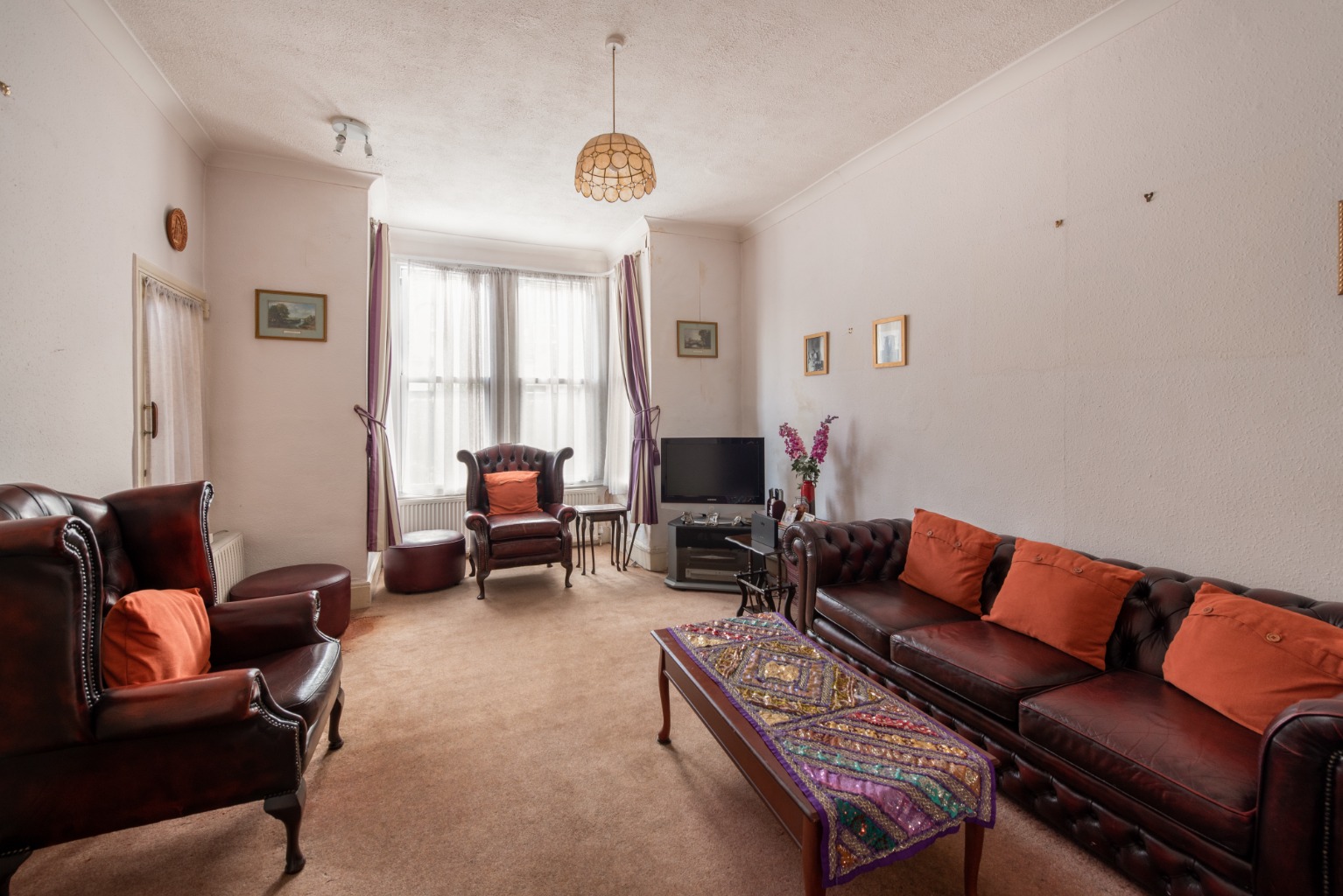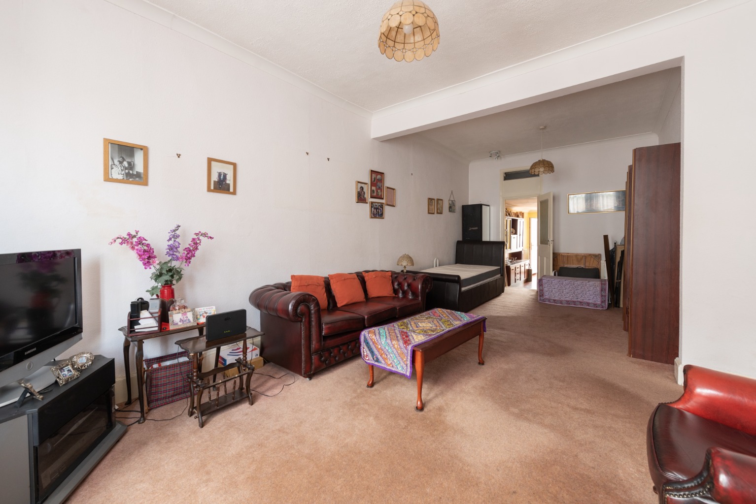 Guide Price £650,000 - £700,000. This large mid-terrace four bedroom house is ideally located on the border of Leyton and Stratford. There’s a flexible layout with four generous-sized bedrooms, two reception rooms and plenty of storage space. Situated on the High Road, this property put you close to all the impressive amenities of Leyton, Stratford and Leytonstone. You approach the property through a small front garden, which offers a level of privacy from the street, and features an original diamond-patterned Victorian tiled path to the front door. The garden is fully paved for easy maintenance and there’s plenty of room for bin storage. The front façade is rendered and painted in a light cream colour, setting it apart from neighbouring properties, and there’s an attractive stone mullioned bay window to the ground floor, which has an unusual corbelled central pillar, matched by the first floor window above. The porch is framed by columns with ornate corbels and topped by an unusual, peaked arch. Through the timber outer front door, which provides additional security and separation for the property, you’ll find yourself in the porch. To the left is the first door to the main reception room and straight ahead is the original front door which provides access to the hallway. The generous main reception room benefits from abundant natural light from the large bay window and has retained many of its original features, including ornate cornicing, wood trim, a curved wall section and impressive sash windows. The sitting area offers potential for various layouts and the bay with its almost full height windows is crying out to be celebrated with a statement piece of feature furniture. Passing through into the second space, we can see that there’s room here for a large dining table and dresser, making this reception room an ideal space to entertain family and friends. With other alternative locations in the property for your dining area, this could instead be used for additional living space or as an impressive study or library. The plentiful wall space in this room lends itself to the display of some large, stylish art pieces to provide the feel of an elegant gallery. There are large radiators to guarantee a comfortable atmosphere and decoration is simple with white walls and trim, and an oatmeal carpet. Through the door at the end of the main reception, you’ll find yourself in the morning room. Currently set up as a dining room, there are many possibilities for this area, including as a second sitting room, a study, or a spectacular kitchen as part of a wider refurbishment project. There would be room for long runs of cabinets and work surfaces, as well as potential for a large island if you wanted to go for it! The roof of the single story extension in this room could even be opened up with a large roof lantern or full length glazing to flood the space with beautiful natural light. Flooring is mahogany effect laminate, and there’s a fully glazed door leading into the lean-to conservatory, along with another door leading into the kitchen, where we’ll head to next… The kitchen has been well designed to make best use of the available space with a large array of base and wall cabinets and an impressive amount of worksurface. The cabinets and drawers are finished in an attractive beech, with the countertops in granite-effect laminate. There’s a dishwasher, an integrated double oven and a large, five ring gas hob with extractor above. Natural light comes from a window and fully glazed door facing out onto the conservatory. Again, as part of a potential reconfiguration of the downstairs layout, this would make an ideal utility and laundry room with access perhaps being created to the downstairs shower room - which we’ll explore later - to improve the layout of the conservatory area. The lean-to conservatory has full height walls, large French windows leading to the rear garden and a fully glazed roof. This room currently houses the combi gas boiler and provides access to the downstairs shower room. Presently used as a utility space, this room could easily function as additional living space, a playroom or study. Let’s take a look now at the useful shower room. Here you’ll find a low flush WC, large pedestal hand basin and large shower cubicle. Decoration includes dark blue tiles to the lower portion of the walls, with white tiles above separated by an attractive floral border. There’s also a large window facing towards the rear garden. Next, let’s head back into the conservatory and then out through the French windows into the large garden. Laid mostly to lawn with borders of mature shrubs, the garden is west facing, meaning that it benefits from the evening sun and would make an ideal relaxing and entertaining space. There’s even an outdoor tap and large butler’s sink to support your green fingered activities. As we’ve seen, the downstairs layout is substantial and already provides practical family living. With just a little imagination and relatively little effort, this could be a truly impressive space that you’ll want to enjoy and share with your friends and family. We’re now about to discover that the rest of the property also offers similar levels of practicality and potential… Returning through the conservatory and back into the morning room, we’ll take the door facing us and to the left, into the hallway. As you enter the hallway, to your left you’ll find an area under the stairs, which is ideal for the storage of coats and shoes. There’s also access here to the large basement offering an additional storage area. Further along, to the right, are additional doors allowing access to the main reception room. On the left is the staircase to the first floor. Decoration is light cream walls and a dark russet carpet. At the top of the stairs, you’ll find yourself on the large split-level landing, with the lower level having a large, full height bui