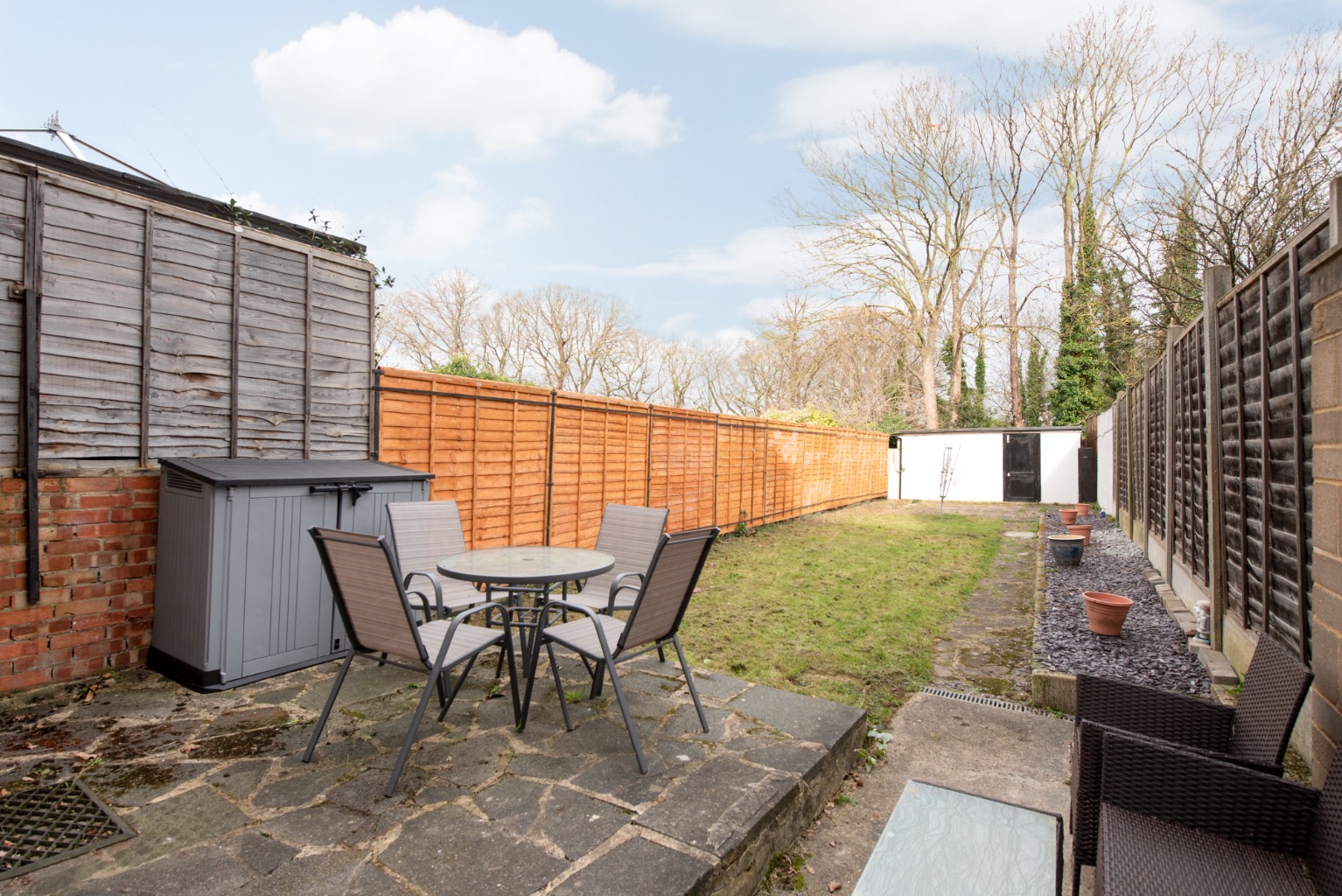 Back to the hallway and into the kitchen/diner ahead, you’ll note the amount of space and functional layout – plus the natural light provided by the rear glazed door and surrounding windows. The door leads out to the impressive 50ft garden with double detached garage. There’s also a useful downstairs WC off the kitchen – a practical bonus for a busy household.