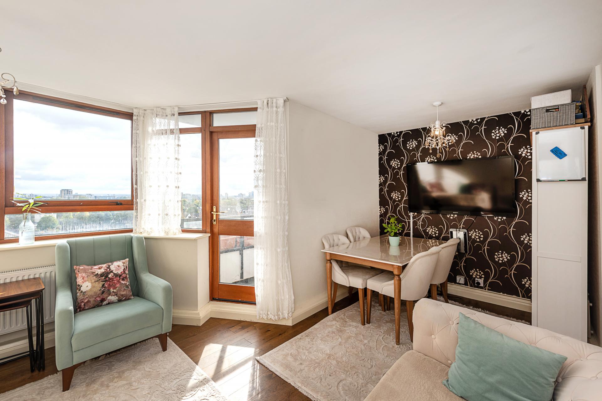 Chelsfield point is an attractive "brick" built local high rise block it is an instantly recognisable block on the periphery of Victoria park Village as its stand alone among the local houses and therefore offers extensive views in all directions but our apartment is found on the south side of the building has an amazing look towards canary wharf.Internally it is a generous space arranged with 1 bedroom,lounge/diner with access on the southerly facing balcony, kitchen, bathroom with separate WC as well as a private storage cupboard on the communal landing.Some of the apartments have chosen to reconfigure the space to transform the space into 2 bedrooms (subject to the relevant approval)