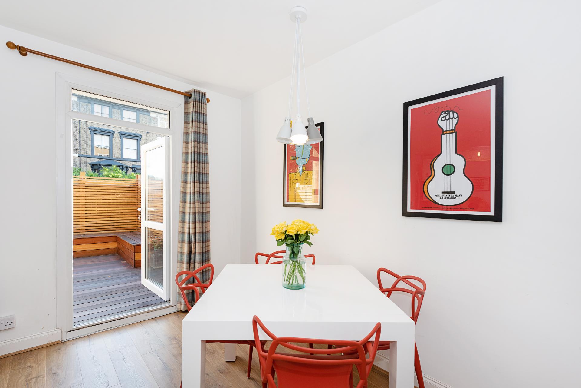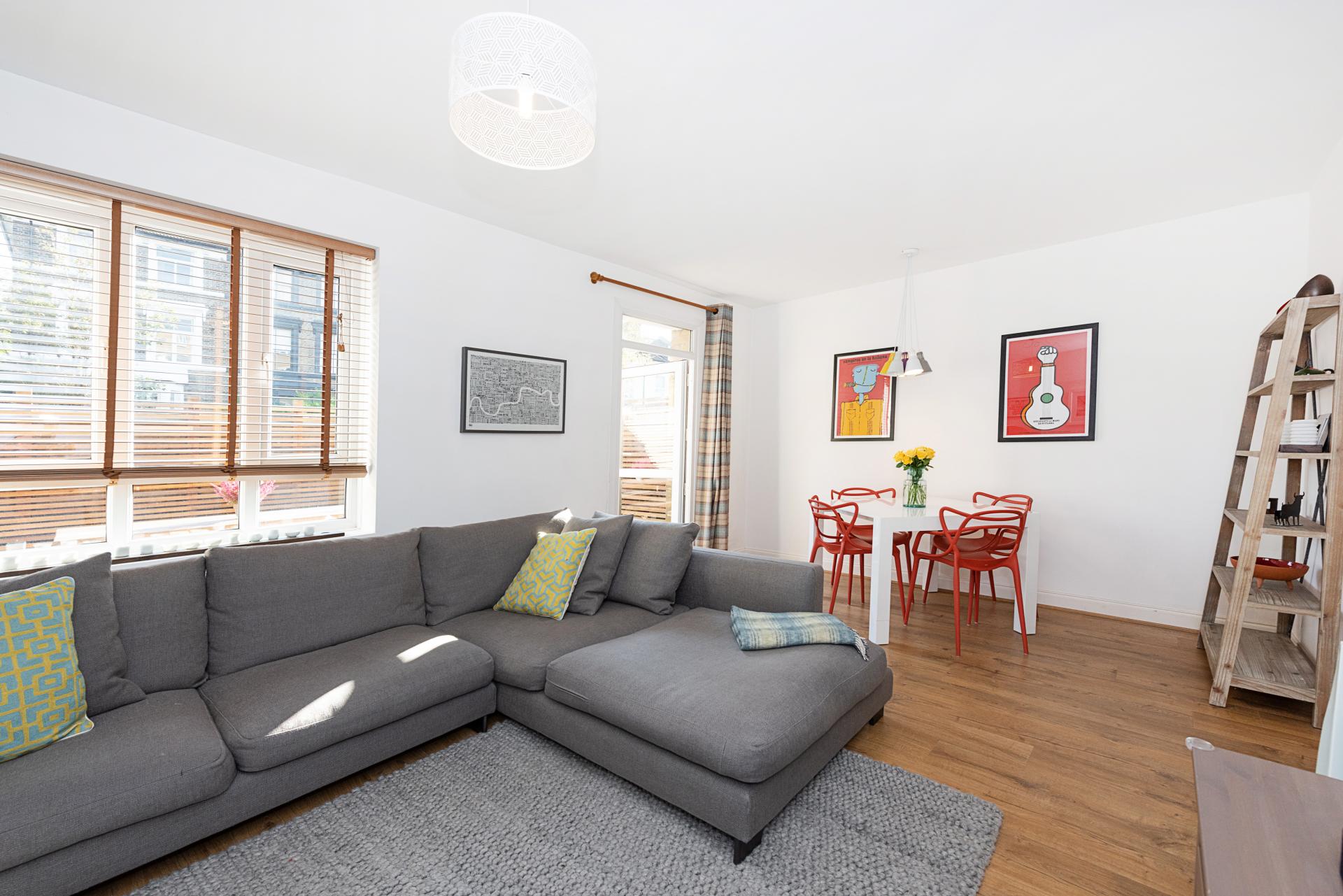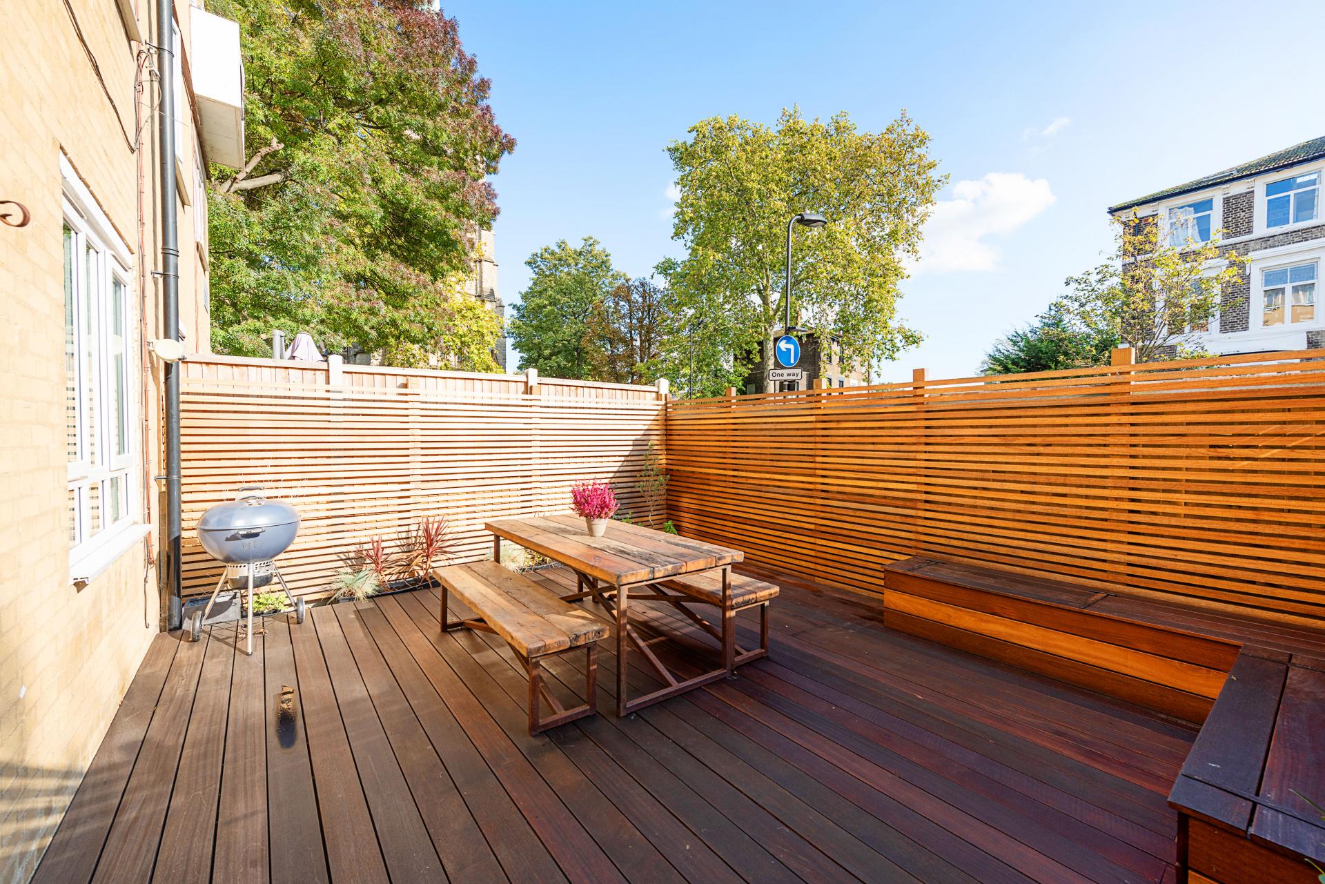 Thi duplex apartment sits in a picturesque location just off of Lauriston Road with views of the church of "st John of Jerusalem" church from your garden.Arranged over 2 levels and measuring over 750 sq ft, this very spacious apartment offers some fabulous benefits; a high quality re-fitted kitchen & bathroom, a large open plan living/dining area 2 large double bedrooms, additional WC, a modernised& low maintenance south facing rear garden and secure parking within a gated turning.