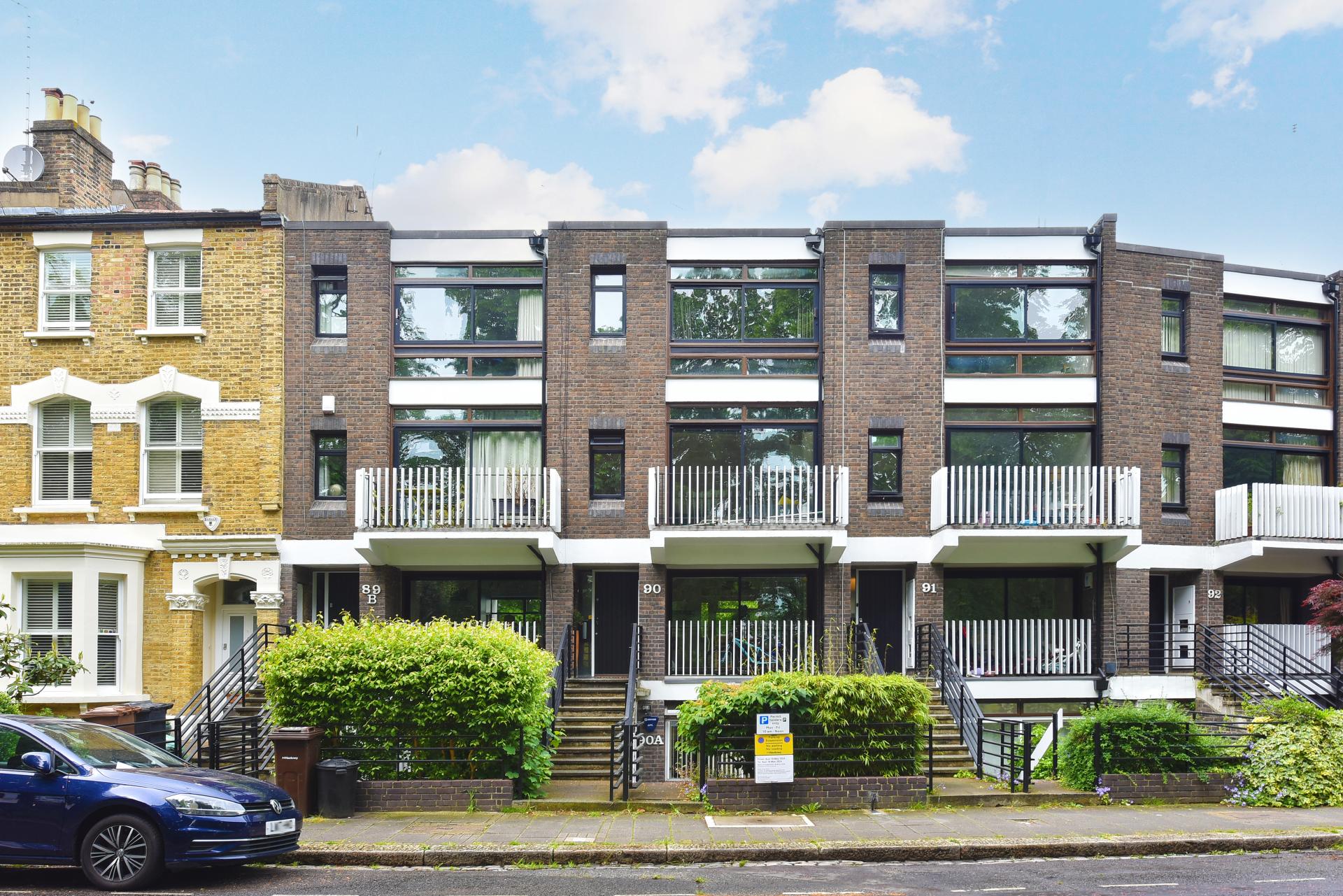 Built in 1966, this three-bedroom, modern town house overlooks the beautiful Victoria Park and is a heartbeat from the bustling life of Victoria Park Village. Designed by architect John Spence for the Crown Estate, it is a contemporary interpretation of the traditional terrace and still looks as striking today as when it was first constructed. In 2008 the house was updated by architect Gordon Shrigley, greatly improving the flow and circulation of the ground floor.The house offers everything that a modern family require with 3 double bedrooms, 2 reception rooms, modern kitchen with access to a generous garden & rear access gate, perfect for dog owners or cyclists, but the striking points will be that all the main living accommodation - inc; lounge, dining room & master bedroom offer amazing park views complimented with two south facing balconies