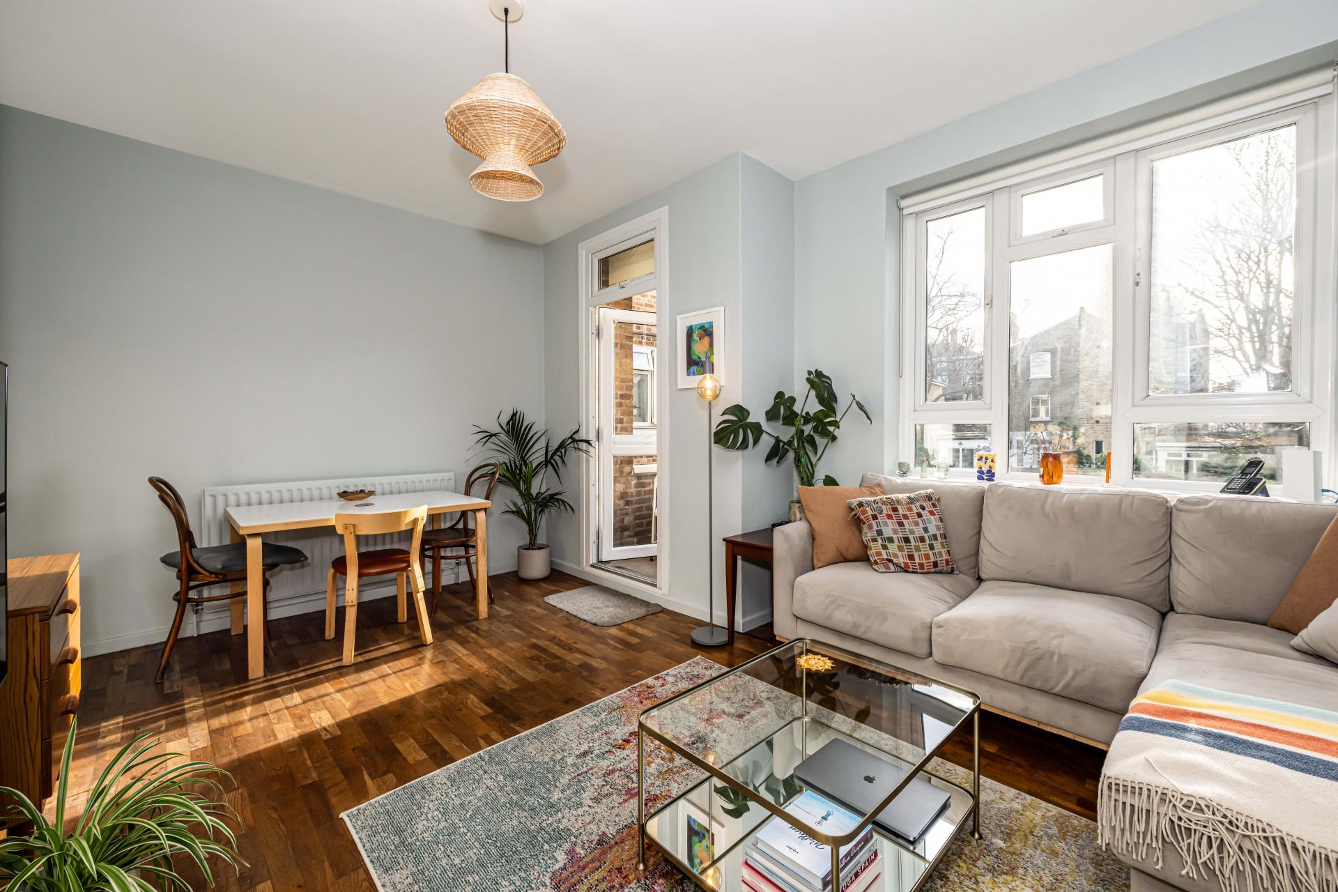 Situated on a quiet, no-through section of Tudor Road, this spacious two-bedroom apartment offers a unique blend of modern living with charming original features, all within a small, intimate block of just 7 properties. Step inside to find a bright and airy lounge that leads to a glorious south-facing balcony, perfect for relaxing and overlooking the lush communal gardens. The apartment includes two generously-sized double bedrooms, a contemporary kitchen/diner, a separate bathroom and WC, and plenty of built-in storage throughout. A standout feature is the ground-floor storage room, formerly a pram store, now ideal for bikes, tools, or extra household items. From here, you can access a private garden with a large patio area, offering a peaceful, rural ambiance while still being moments from the vibrant energy of Hackney. This is a rare find that combines the best of both worlds—seclusion and convenience!