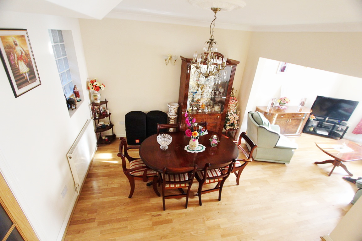 Double glazed UPVC window with frosted glass facing the rear overlooking the garden. Heated towel rail, tiled flooring. Panelled bath with mixer tap, shower over bath, pedestal sink with mixer tap, extractor fan.