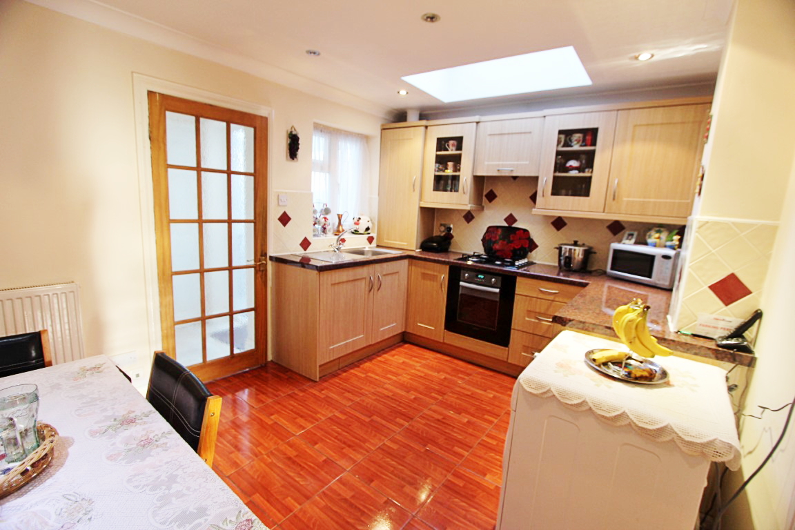 Double glazed UPVC window facing the rear. Radiator, tiled flooring. Granite effect work surface, fitted units, stainless steel sink, integrated, electric oven, integrated, gas hob, overhead extractor, space for dishwasher.