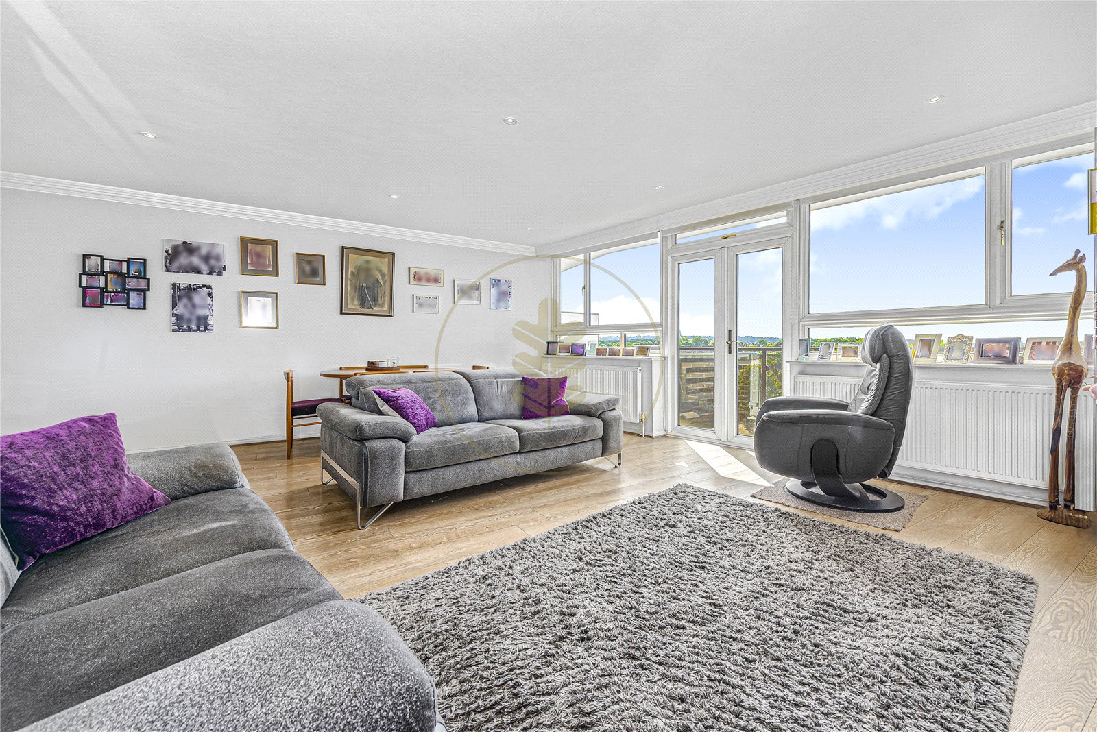 The accommodation comprises a generous 19 ft x 16 ft reception room with dining area, opening onto a large balcony with stunning views, a principal bedroom with fitted wardrobes, a good sized second bedroom, a fitted kitchen, and a family bathroom.