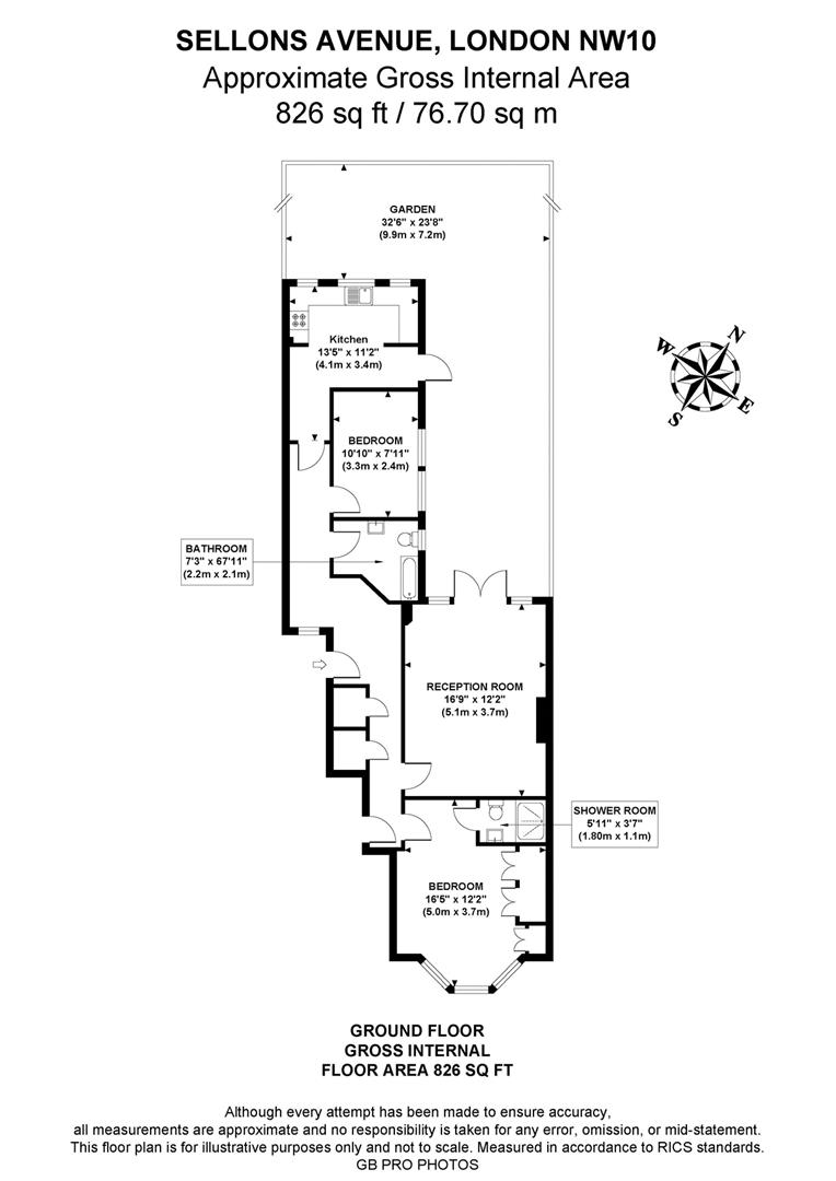 The total floor area is approximately 826 SQ/FT (76.70 SQ/M)