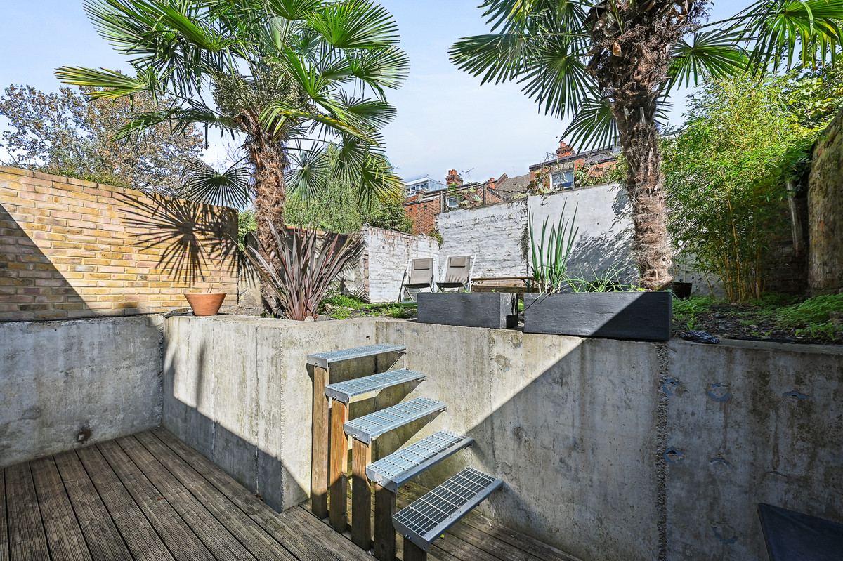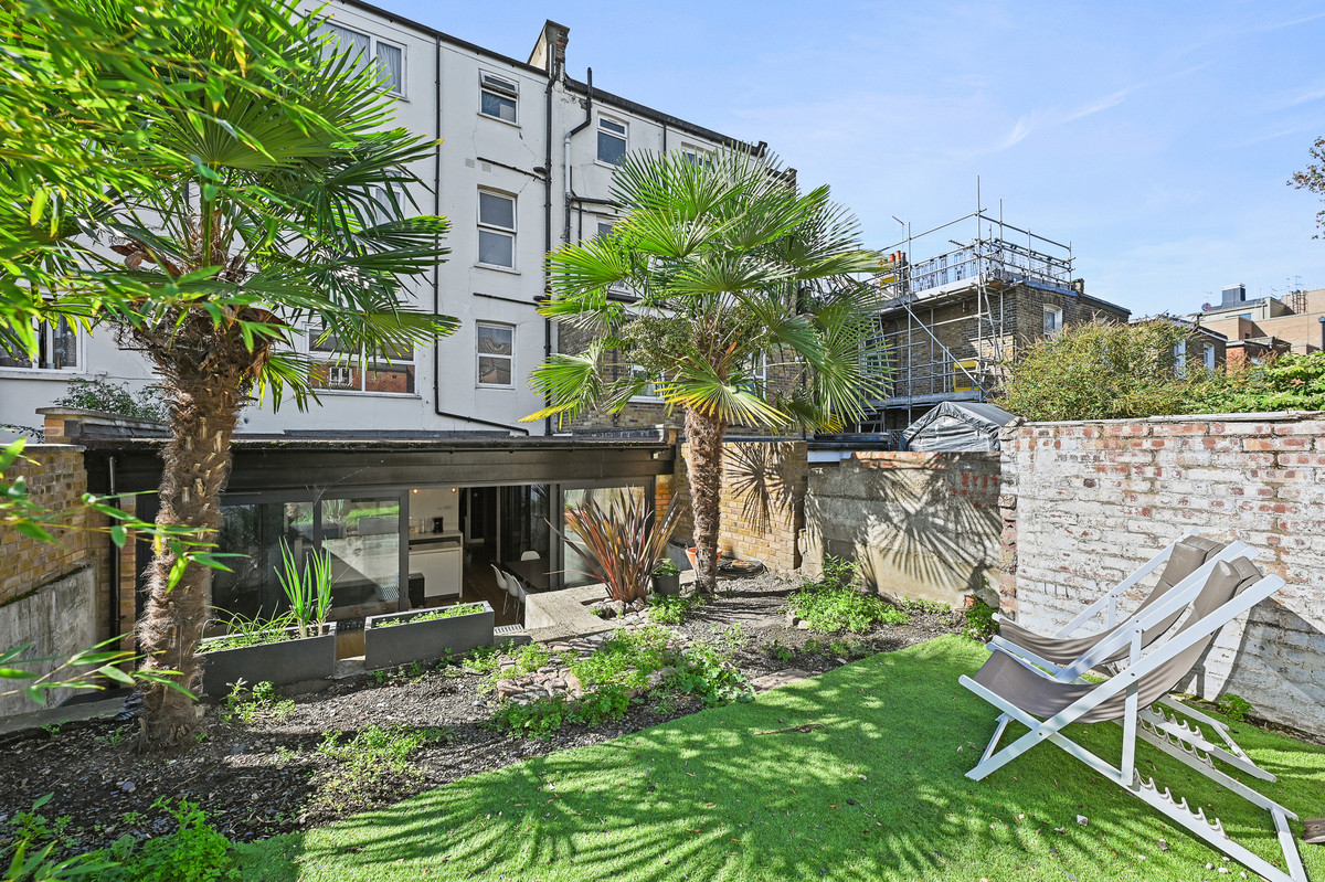 Upon entering, you are greeted by a spacious reception room / open plan kitchen with separate utility room that is enhanced by beautiful light wells that flood the lower ground floor with natural light. It leads out into a tiered garden, perfect for hosting gatherings or enjoying quiet evenings. The flat boasts 4 well-proportioned bedrooms, each offering a serene retreat for rest and rejuvenation and one stylish bathroom and a downstairs guest WC. This home is a perfect lockup and go property for professional couples or young families.