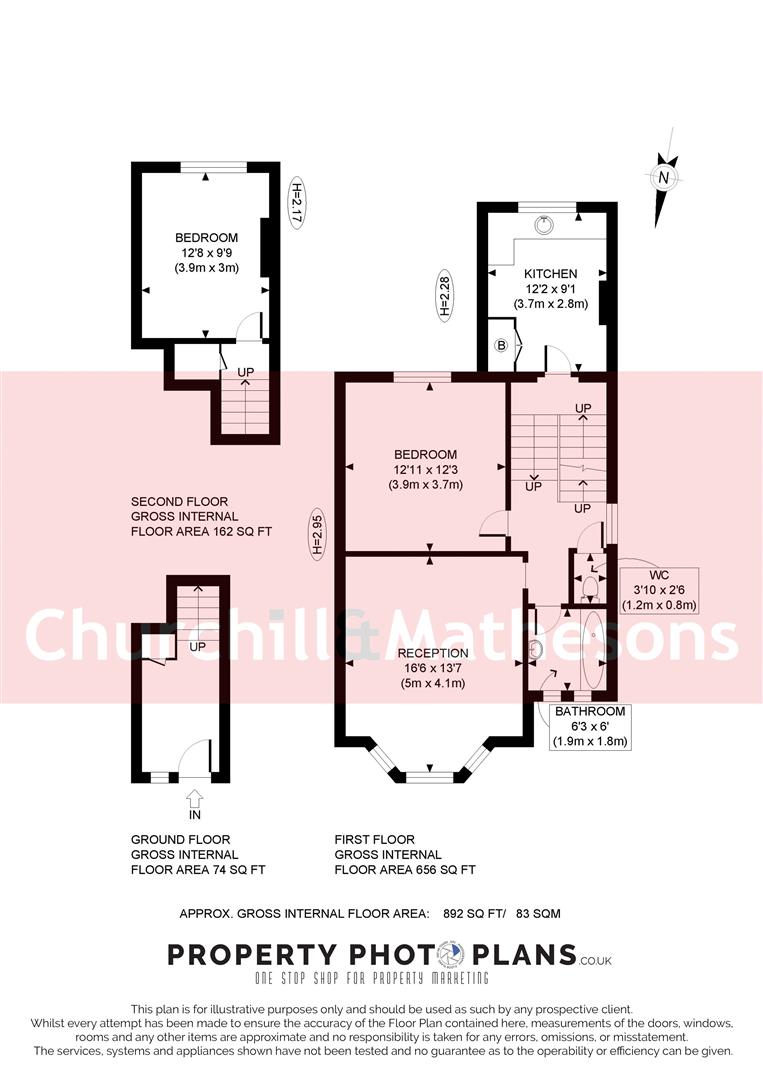 Wc - 1.17m x 0.76m (3'10 x 2'6) -