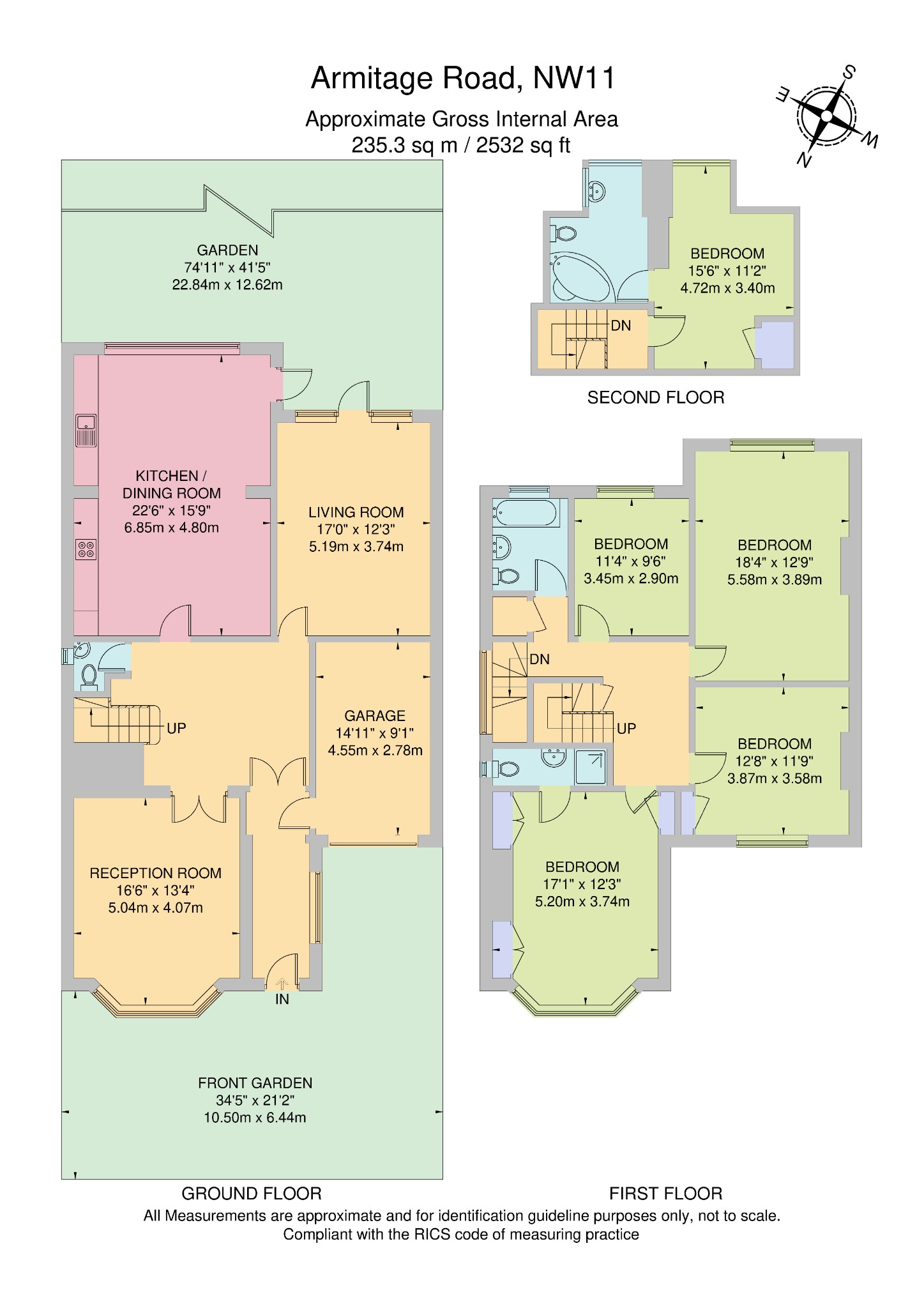 A four bed two bath property spanning 1,520sqf/141.2sqm over three floors located in the popular Hampstead Garden Suburb...