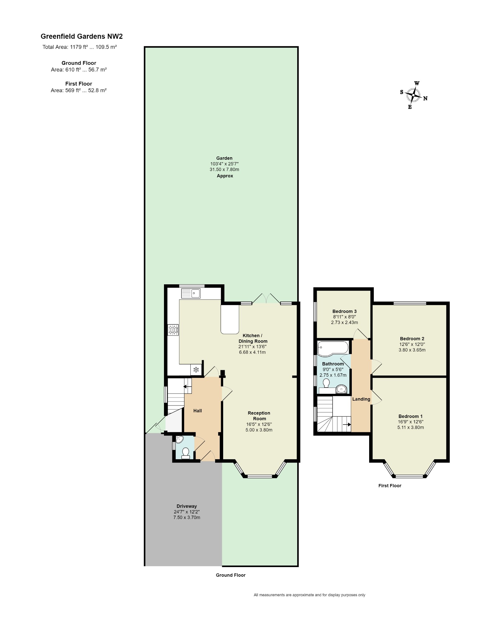 - 1179sqft / 109.5sqm
