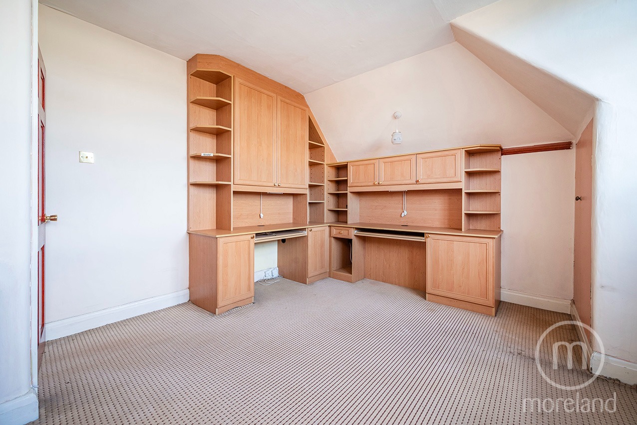 Upstairs, the first floor offers two further good-sized bedrooms. The principal bedroom at the rear benefits from garden views and an en-suite, while the additional bedroom offers comfortable proportions suitable for children, guests, or a home office. A well-appointed family bathroom completes the upper level.