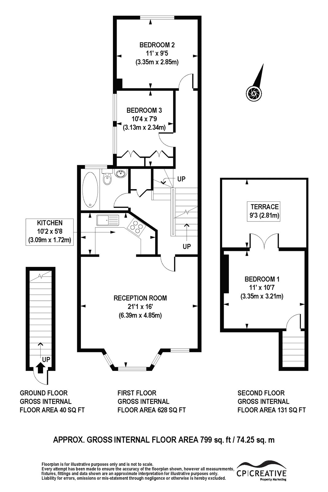 This charming apartment offers well-proportioned accommodation, the first floor featuring a fantastic open plan kitchen/ reception room with ample amounts of light from this bay window as well as two double bedrooms. The second floor comprises Principal bedroom with access to a private terrace. Further benefits include a share of freehold and private entrance.
