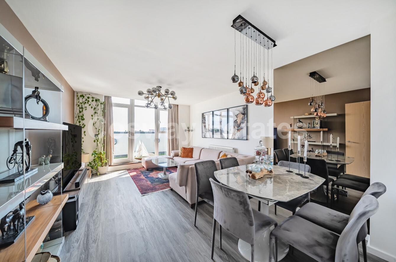 Located in a sought-after development, this stunning, recently refurbished two double bedroom penthouse apartment offers far-reaching views across London.