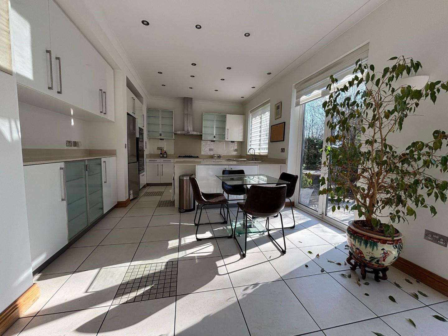 The heart of the home is the impressive open-plan kitchen, dining, and reception area, flooded with natural light and offering stunning views of the south-facing garden, perfect for relaxing or entertaining.