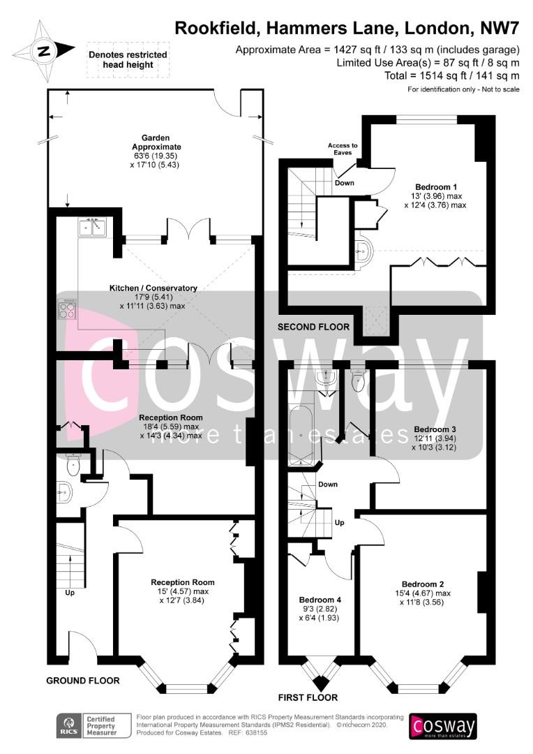 The first floor boasts 3 bedrooms and a family bathroom, separate w/c and a further bedroom on the second floor.