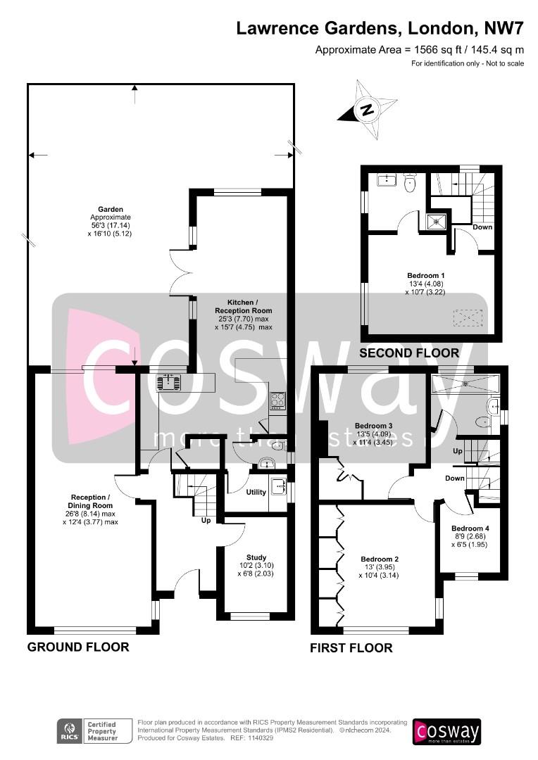 The ground floor features a spacious living and dining room, a modern fitted kitchen with a breakfast area, a separate utility room, a study/snug, and a convenient W/C. On the first floor, there are three bedrooms and a well-appointed family bathroom. The second floor boasts the main bedroom with an en-suite bathroom.