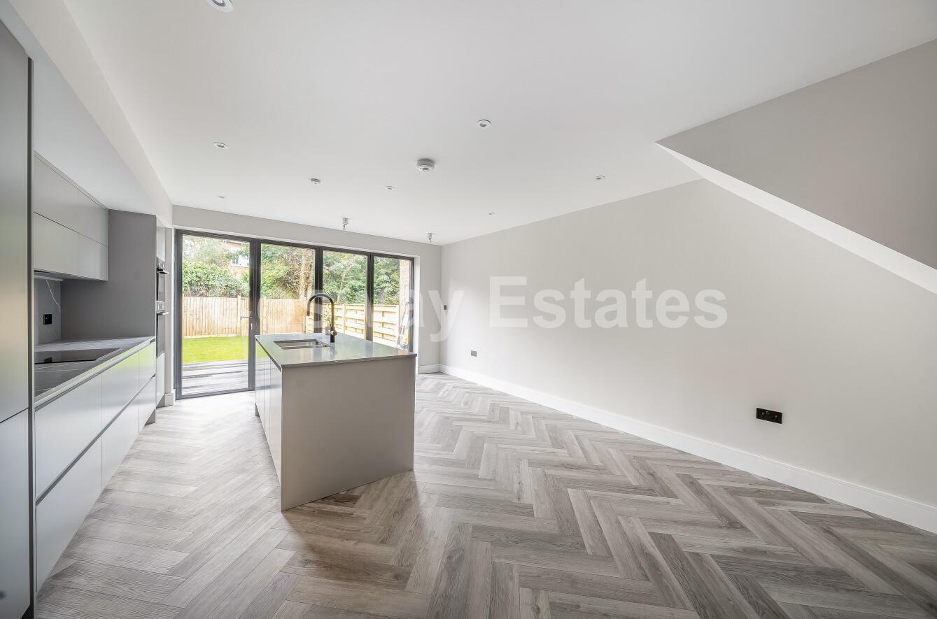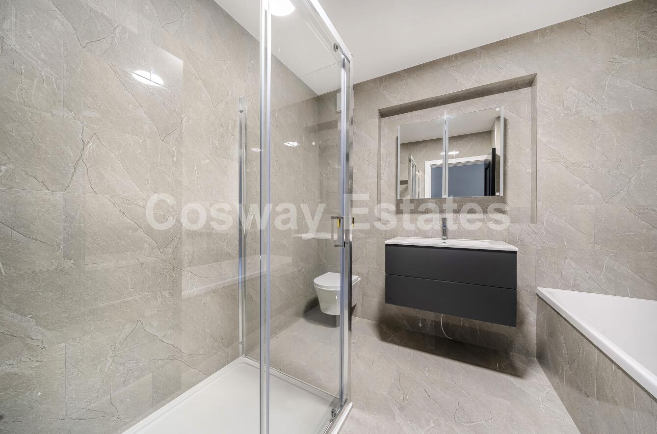 Ascending to the first floor, you'll discover a sumptuous main reception room, perfect for relaxation or entertaining, and a lavish primary suite. The suite boasts bespoke fitted wardrobes and an exquisite en-suite bathroom, designed to the highest specifications. The second floor offers three additional generously sized bedrooms, each designed with comfort in mind, and a luxurious family bathroom.