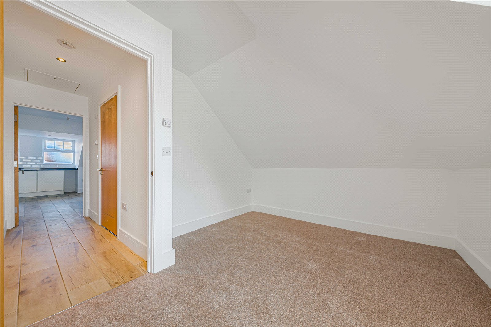 The bedroom boasts a built-in wardrobe, while an elegant bathroom sits to the rear, offering a clean, modern finish.The property also benefits from a share of freehold as well as a long lease.