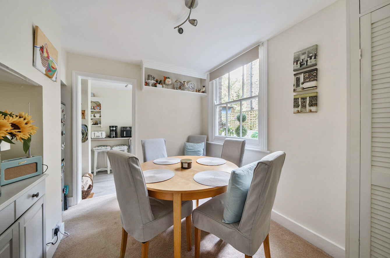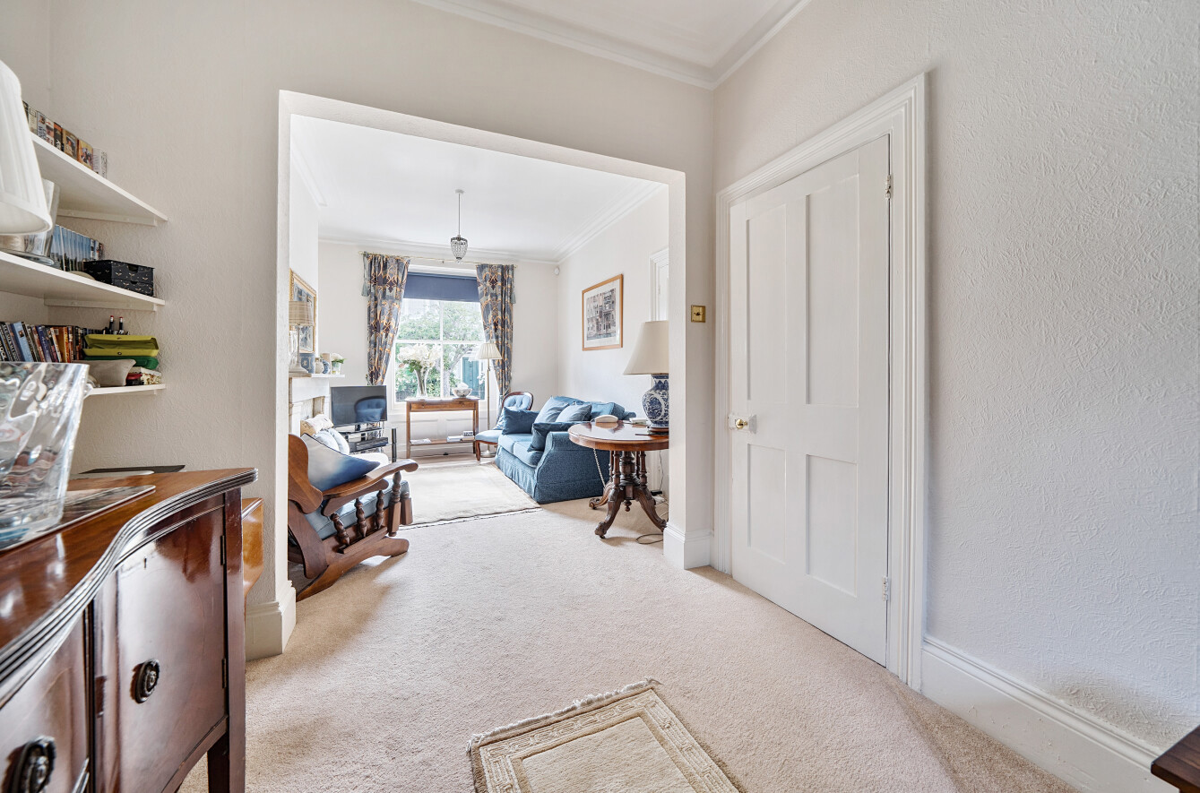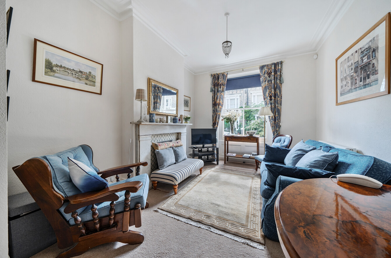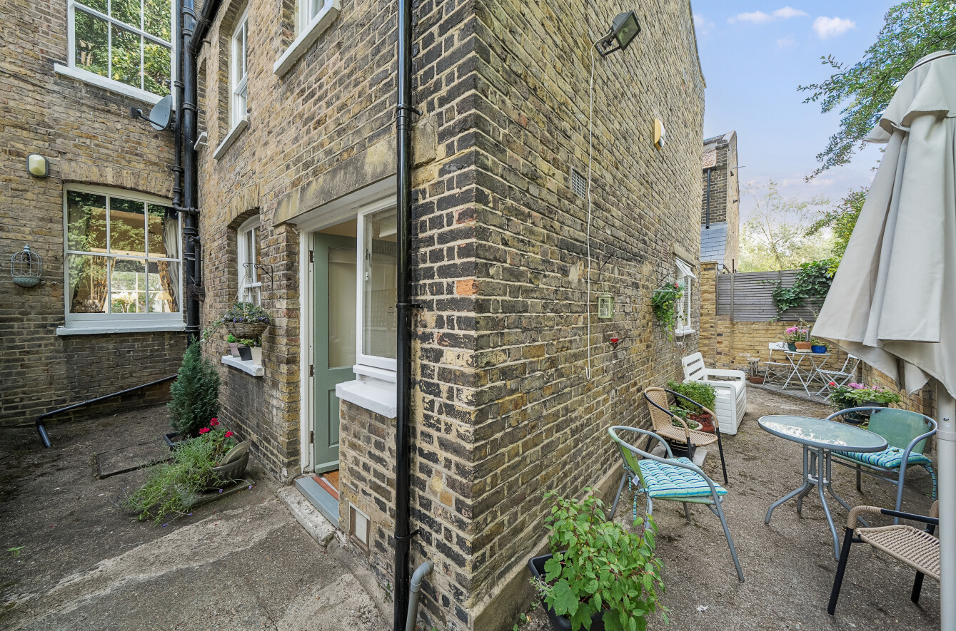 The apartment has been lovingly maintained by the owners and is neutrally decorated throughout. When you enter the apartment into the hallway and on the right, you have a double reception room with carpet, feature fireplace and large sash windows. To the rear of the apartment is the Dining room and separate Kitchen which features a range of wall and base units, breakfast bar and door leading out to the courtyard garden.