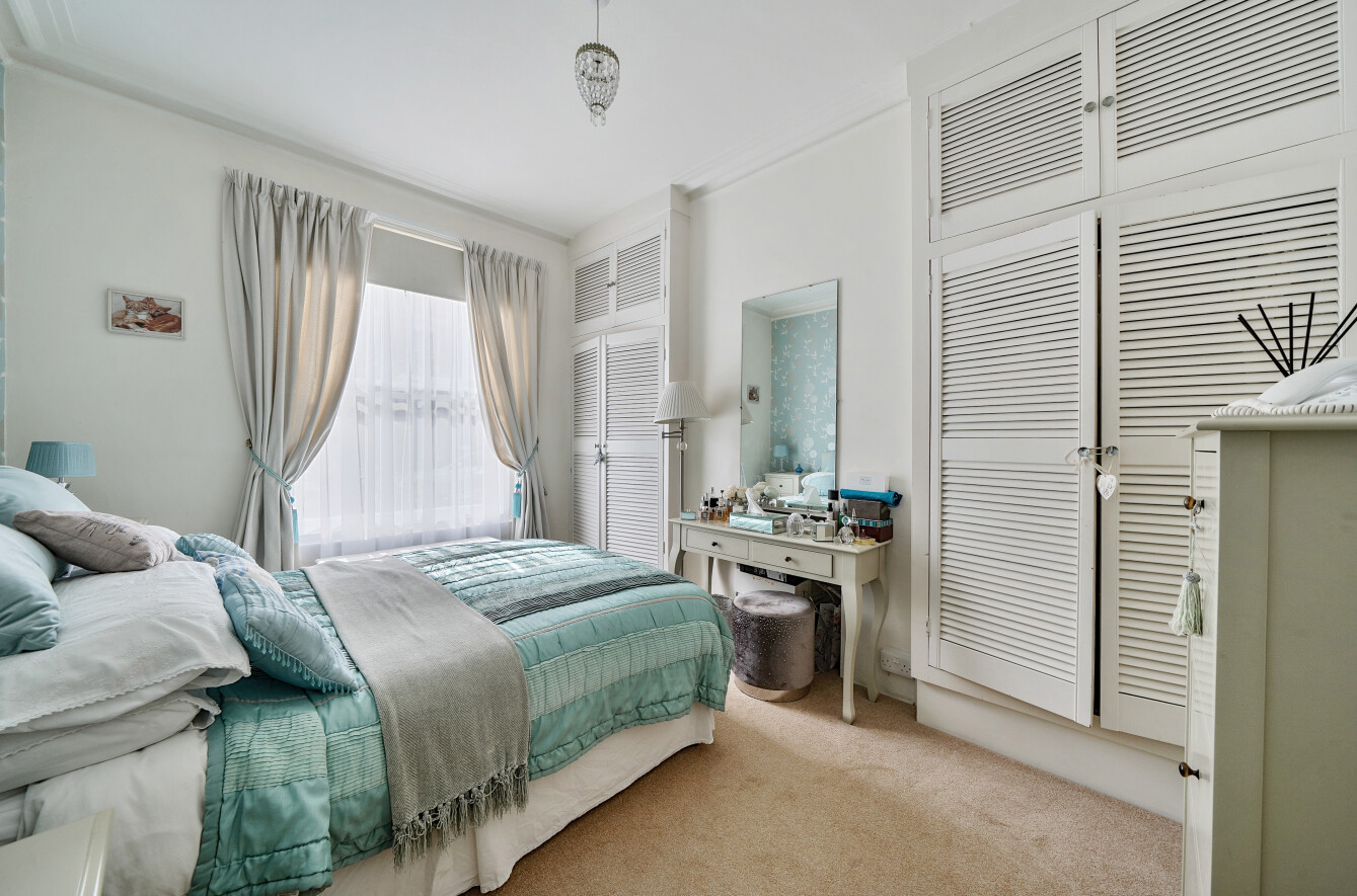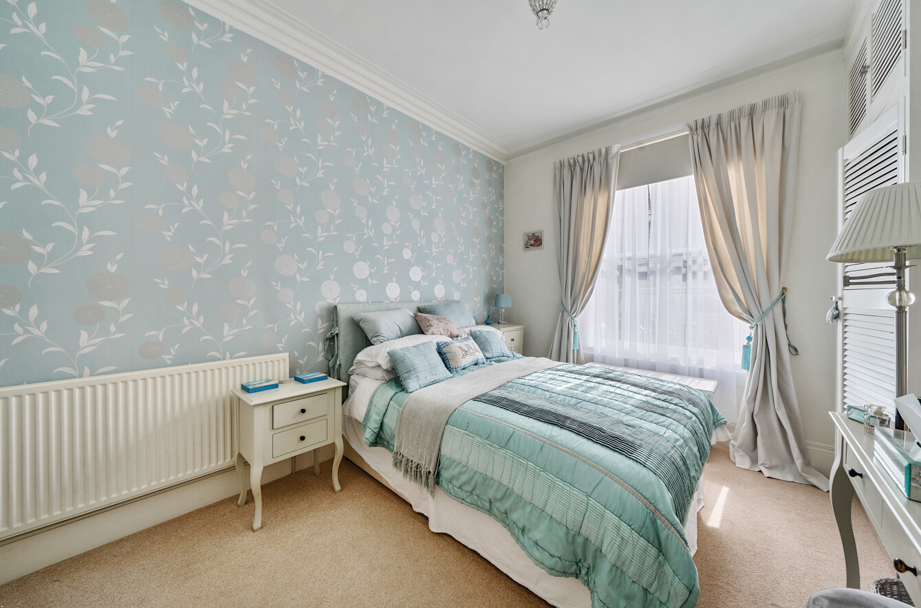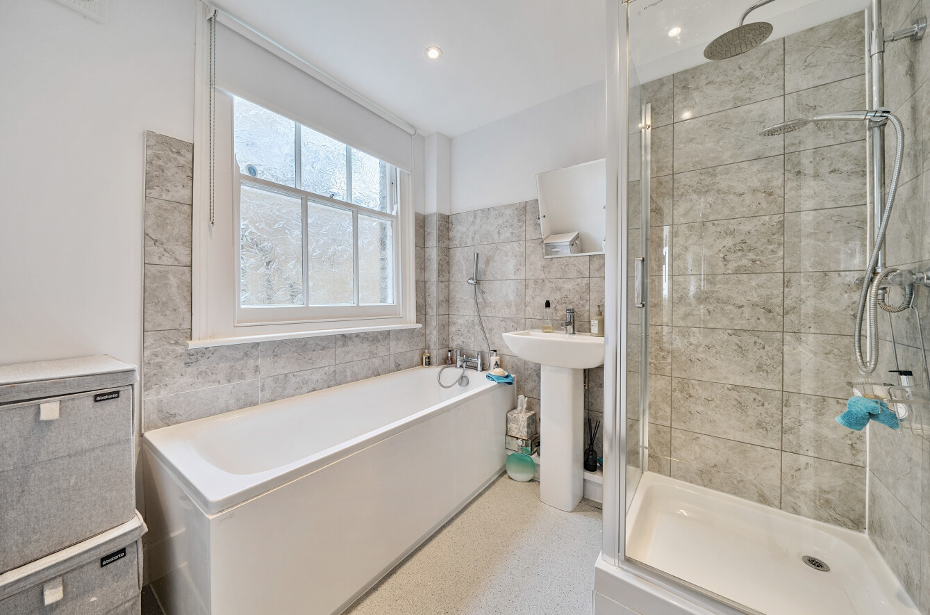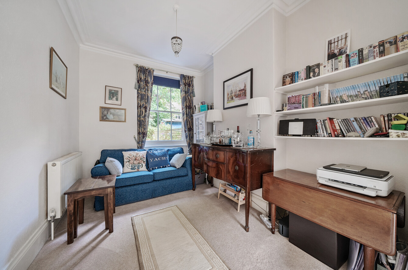 The apartment has been lovingly maintained by the owners and is neutrally decorated throughout. When you enter the apartment into the hallway and on the right, you have a double reception room with carpet, feature fireplace and large sash windows. To the rear of the apartment is the Dining room and separate Kitchen which features a range of wall and base units, breakfast bar and door leading out to the courtyard garden.