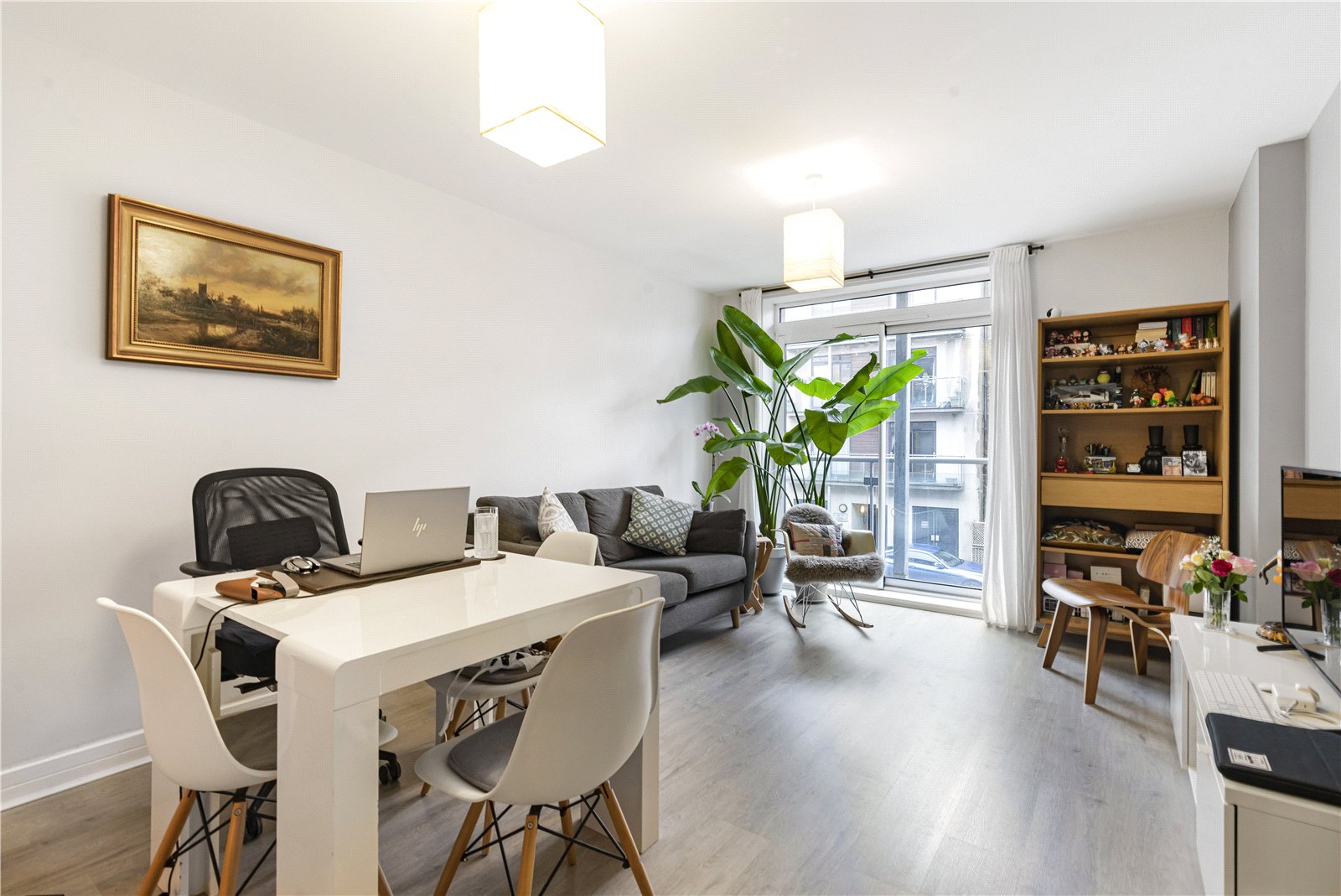 The apartment boasts a spacious reception and dining area, enhanced by a Juliet balcony that invites plenty of natural light, creating a bright and airy atmosphere. The open-plan living space seamlessly flows into a sleek, modern kitchen—perfect for both relaxing and entertaining.