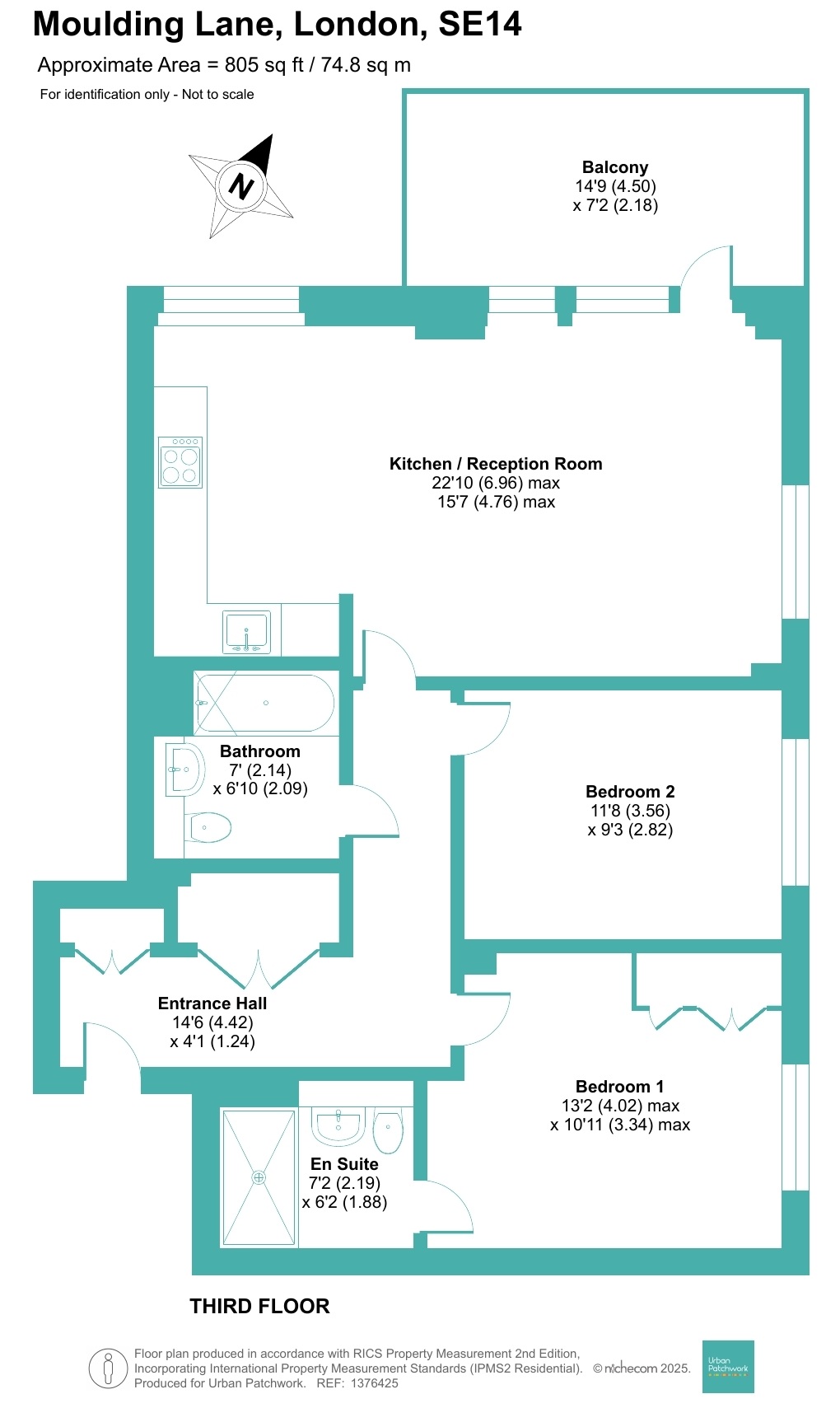 - 805 sqft / 75 sqm