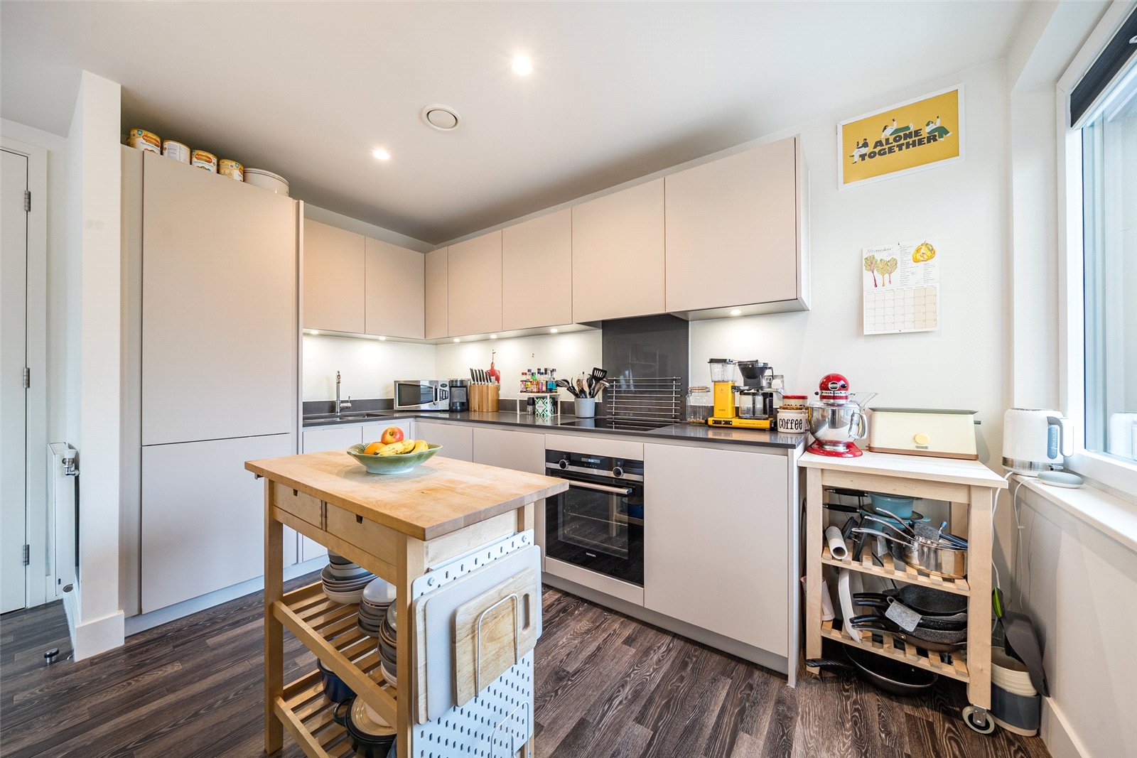 This well-proportioned two double bedroom home has a contemporary kitchen with matt-finished units, integrated Siemens appliances and composite stone worktops. The bathrooms are luxuriously appointed, while the primary bedroom includes fitted wardrobes and an ensuite shower room. Further benefits include practical hallway storage cupboards, Karndean flooring, ventilation system (MVHR), dishwasher, full-size fridge-freezer, high-efficiency double glazing, smart thermostats, lift access, secure video entry system and superfast broadband is available through Hyperoptic.