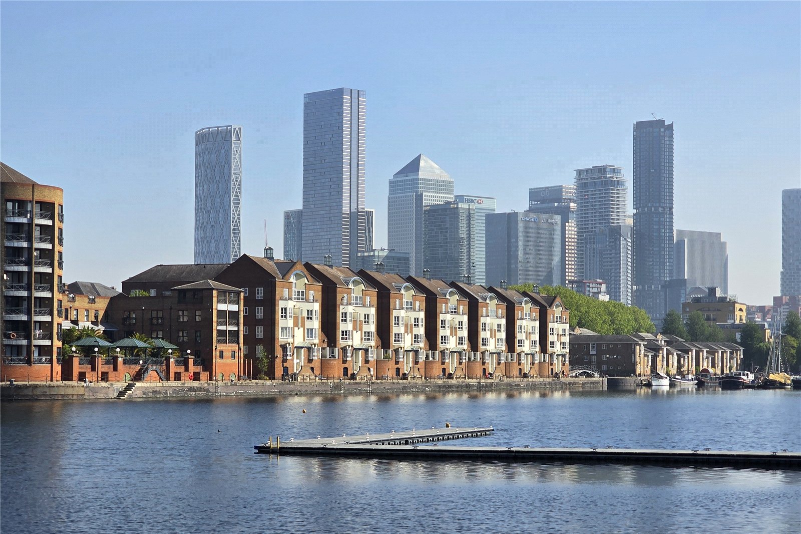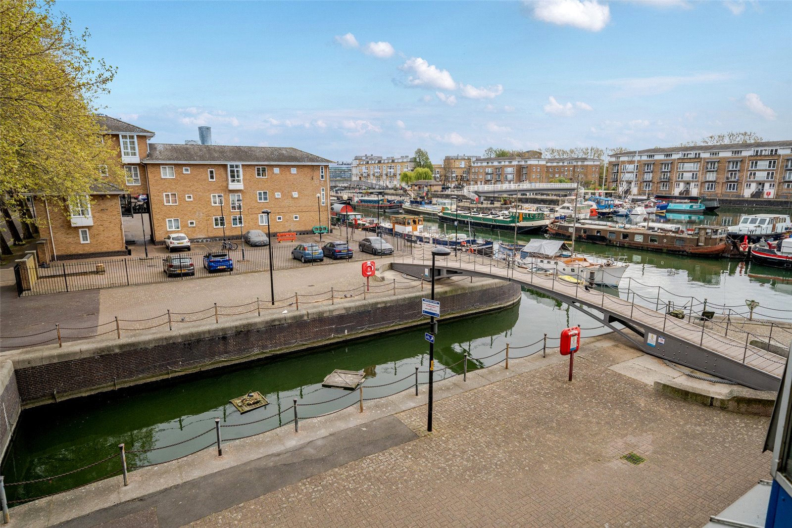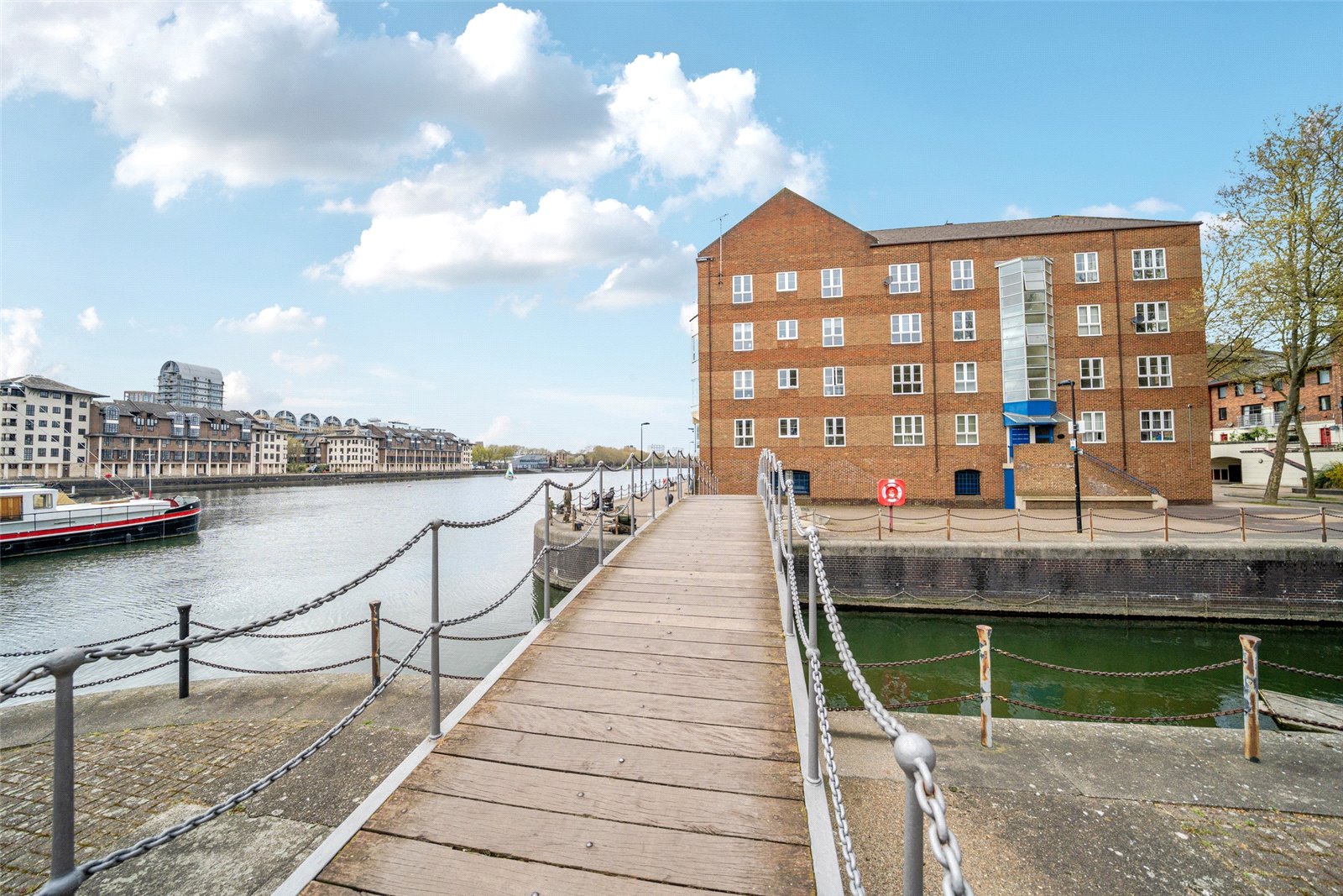 This share-of-freehold dockside apartment, offering a view over the water, is within easy reach of Canada Water and Surrey Quays stations. It is triple aspect, has a separate kitchen, fitted wardrobes in both bedrooms and a secure allocated parking space. Chain free.