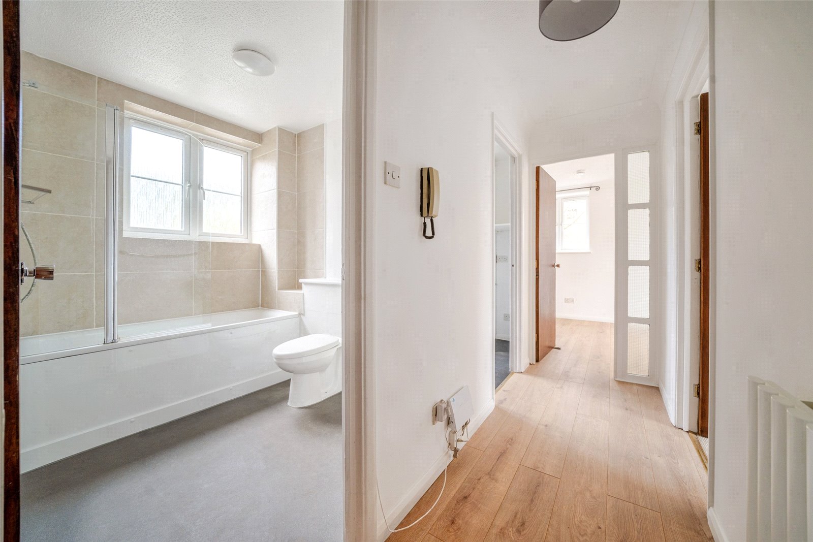It is well proportioned, with a dual-aspect living room that has space to relax and dine, the bedrooms are situated on either side of the hall and both the kitchen and bathroom benefit from having windows. The kitchen was replaced a few years ago and more recently modern double glazing and an upgraded water cylinder have been fitted, together with new flooring in the hall and living room. Additionally, there is a secure communal entrance, new flooring in the living area and superfast broadband is available through Hyperoptic.