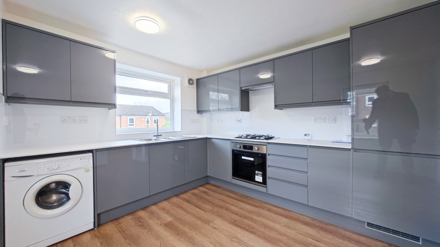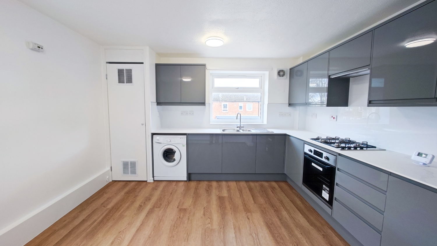 The brand-new kitchen is fully equipped with sleek appliances and plenty of storage, perfect for both everyday cooking and entertaining.