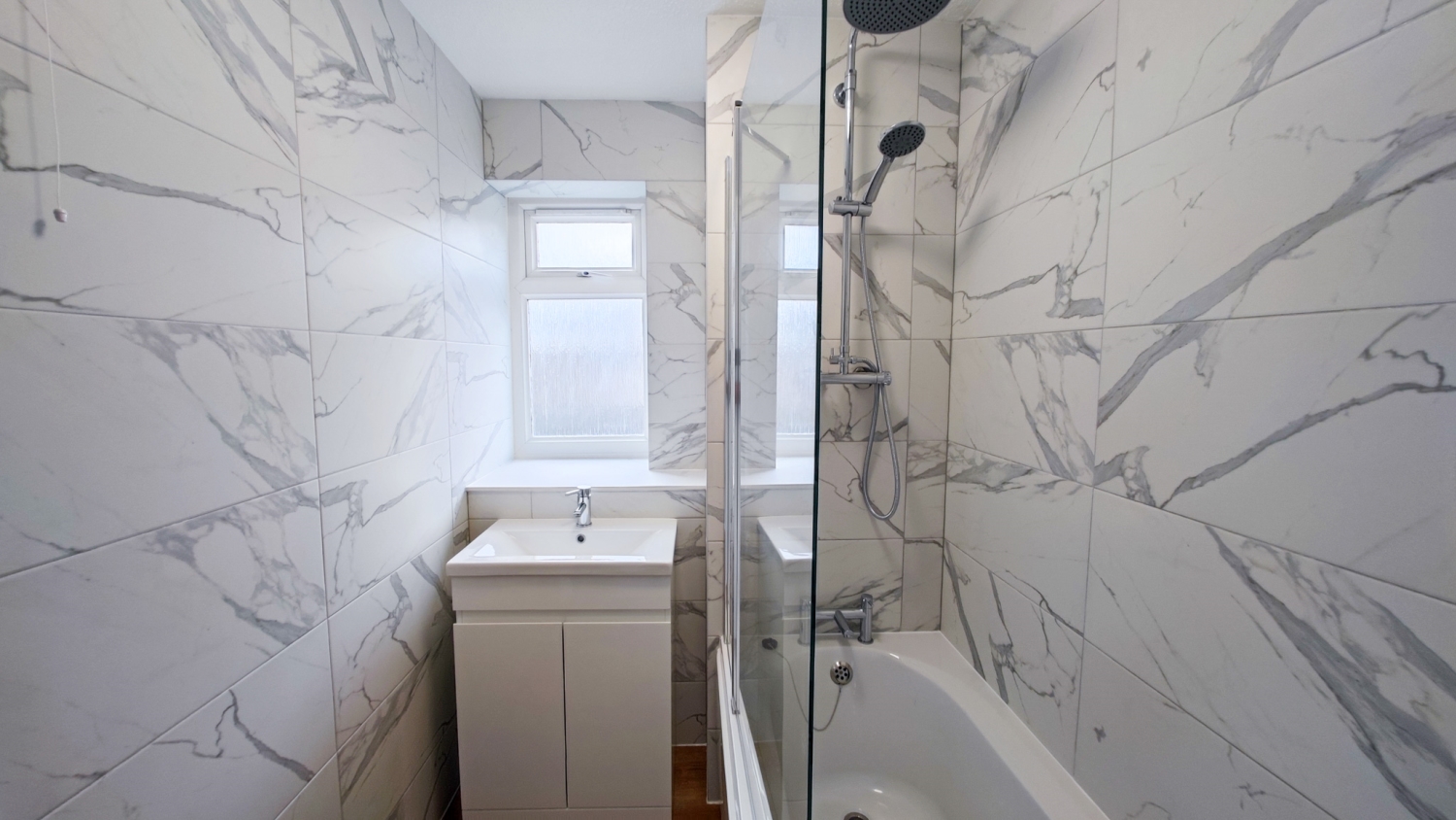 Both double bedrooms are well-sized, offering ample space for furniture and relaxation, while the modern bathroom includes high-quality fixtures and a clean, minimalist design.