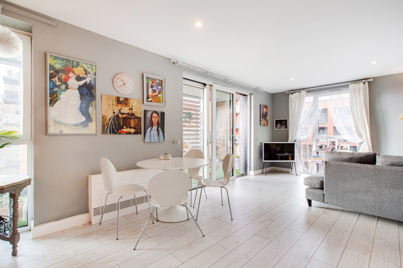 Situated on the third floor, this impressive two-bedroom apartment offers bright and spacious accommodation, featuring an open-plan reception room with a defined dining area, a modern fitted