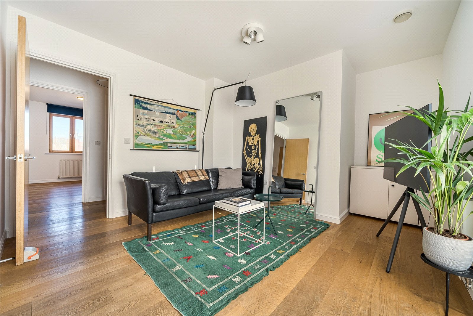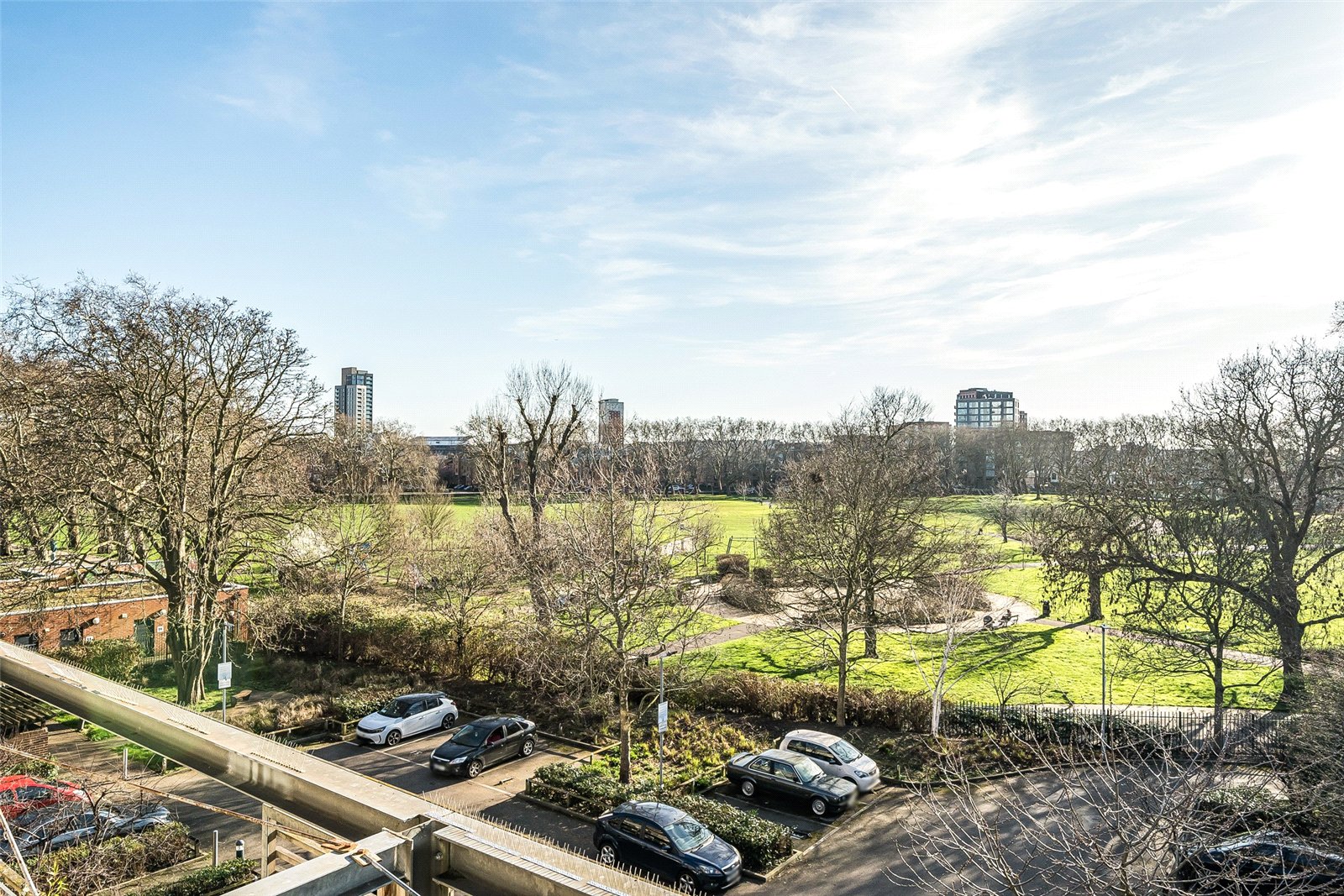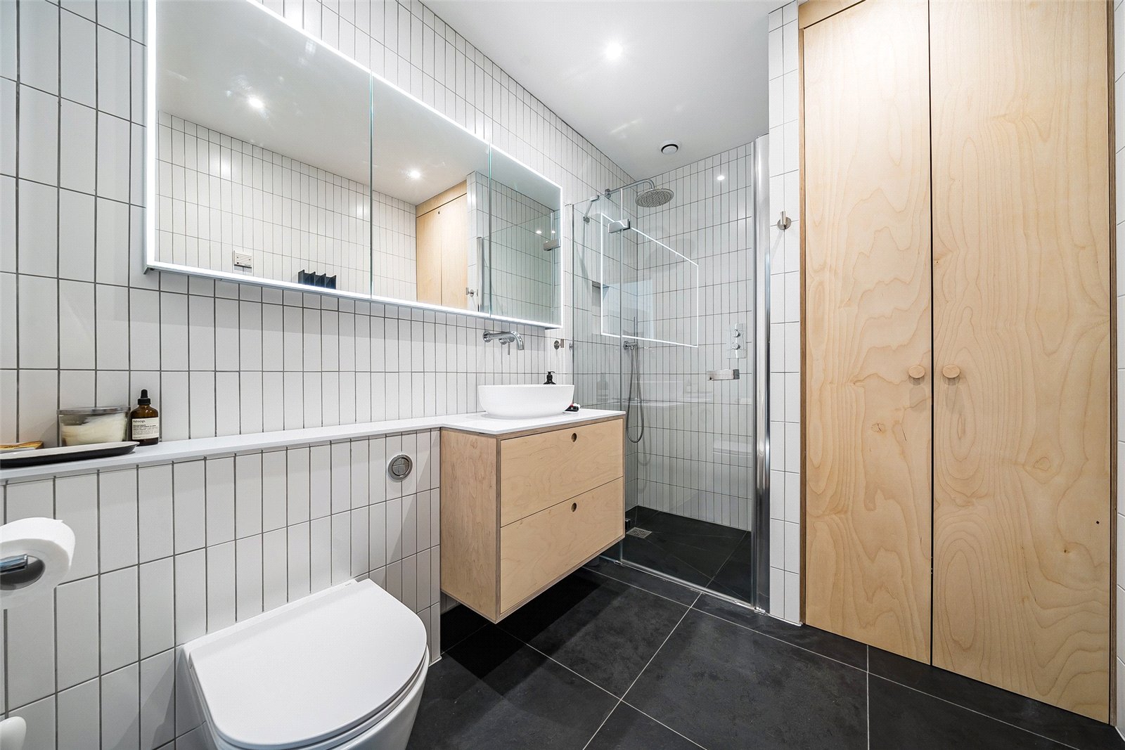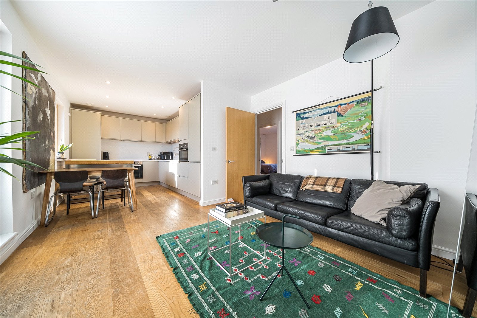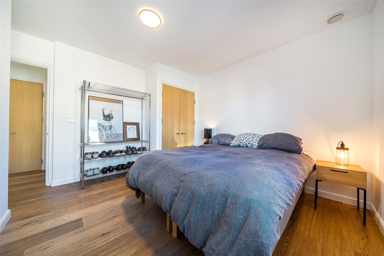 This wonderful third floor home has the enviable end-of block position, resulting in a neighbour only on one side, plus uninterrupted views of London landmarks. It features two double bedrooms, engineered wood floors throughout, quartz countertop and splashback in the kitchen, integrated appliances, space for separate washing machine and dryer in the fully-tiled shower room, gas central heating powered by a recently installed Bosch boiler and superfast broadband availability through Community Fibre. The building is well maintained and has a secure entry system, lift access and secure bike store.