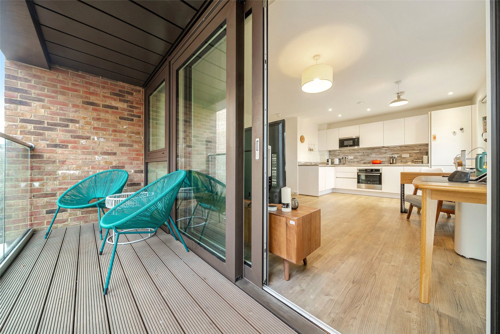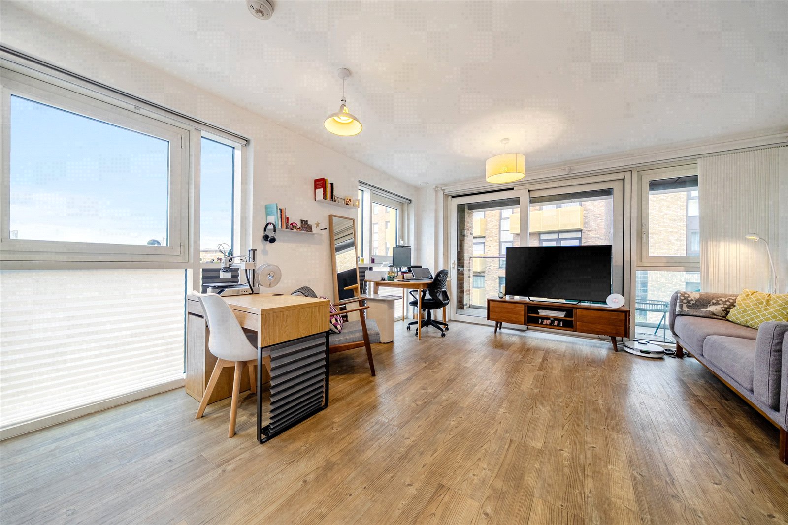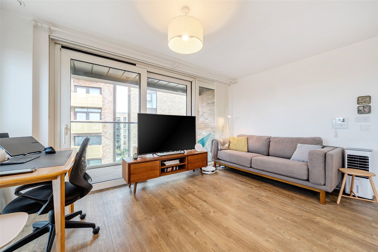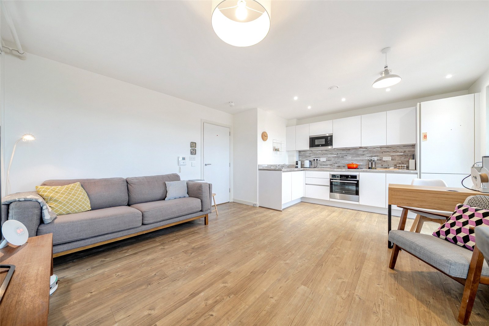 A dual-aspect fifth floor apartment in desirable Greenland Place. It has a sociable open-plan living area with full-width balcony, a beautifully appointed bathroom, underfloor heating and use of the onsite, residents’ gym and 24-hour concierge and shared rooftop garden. Chain free.