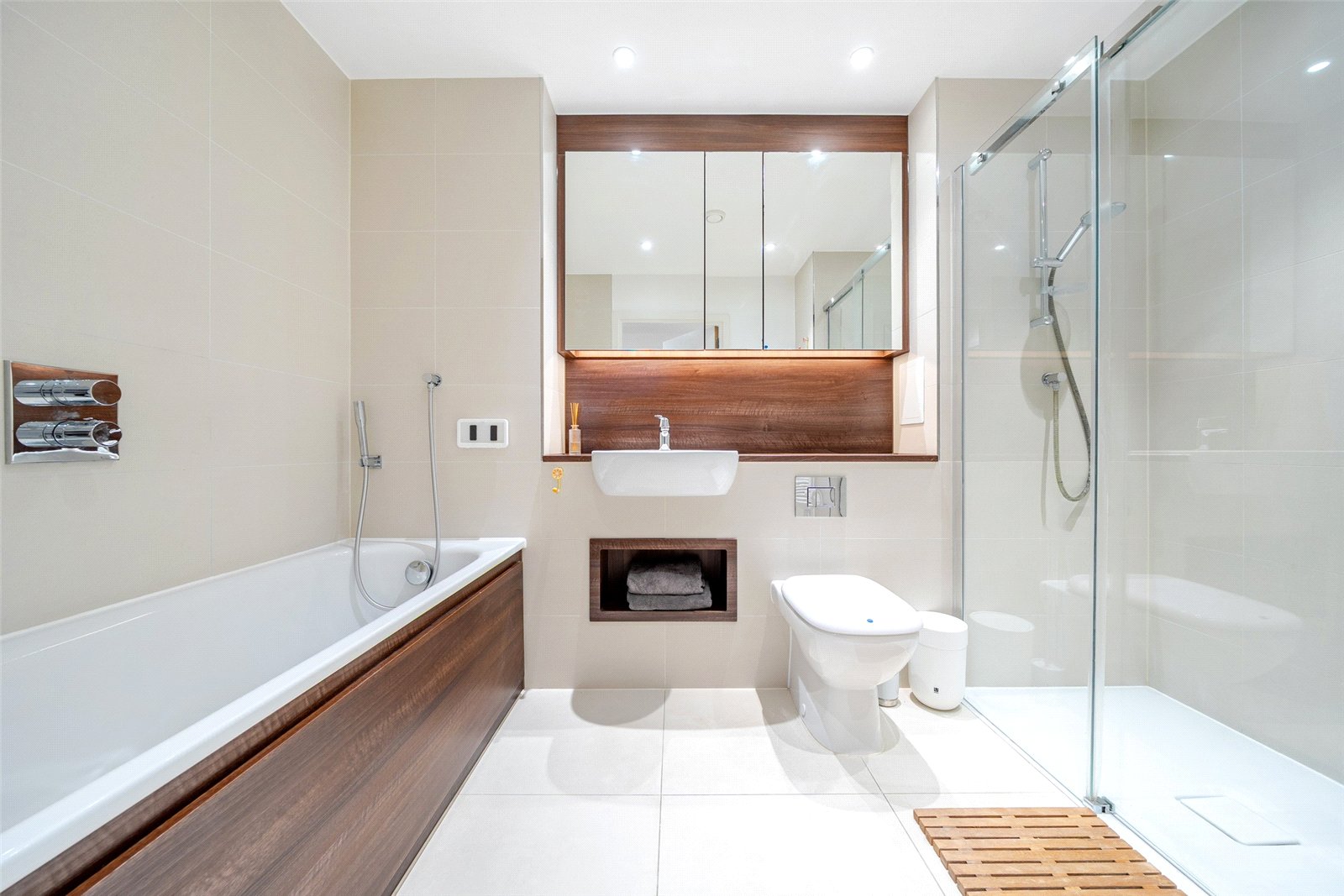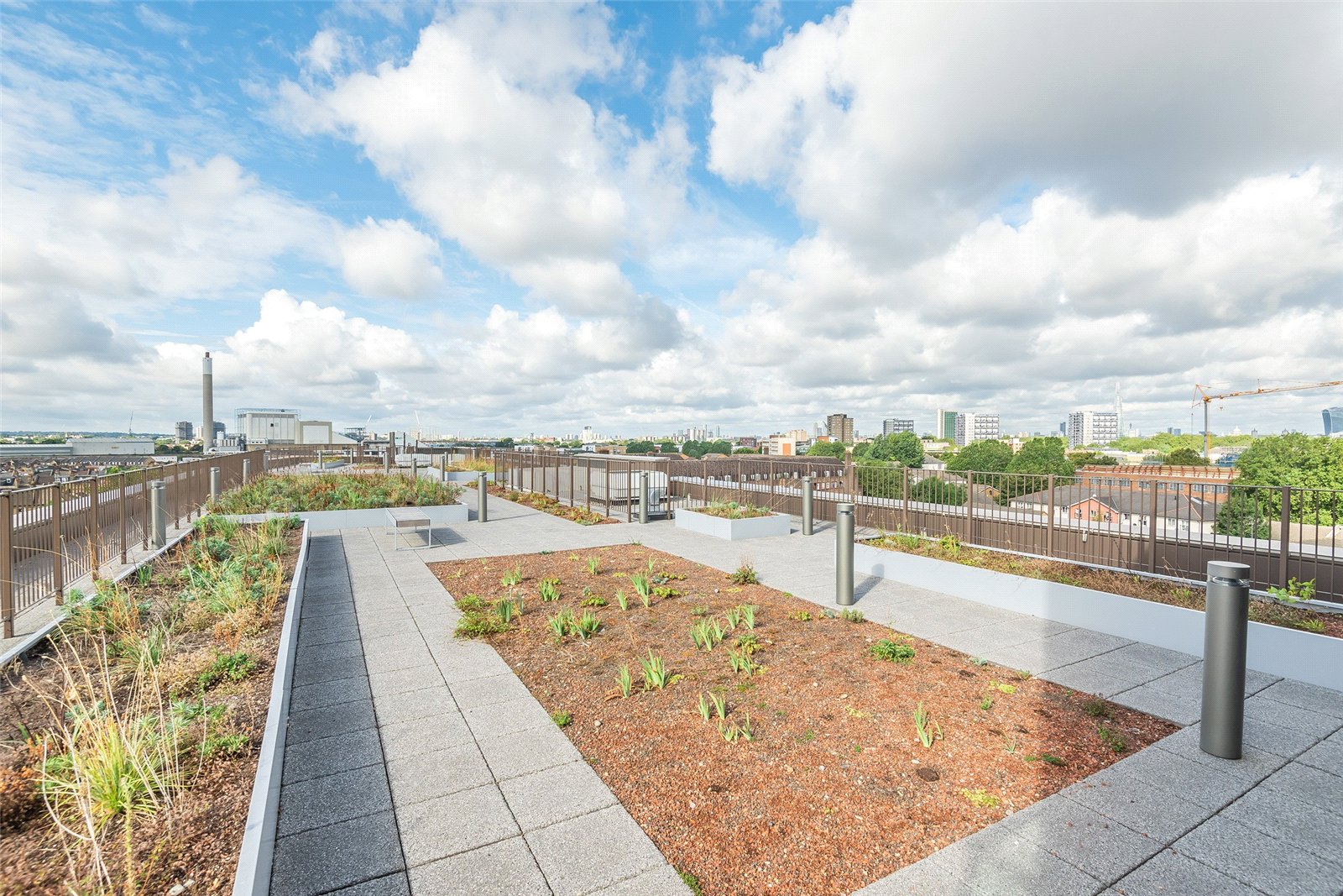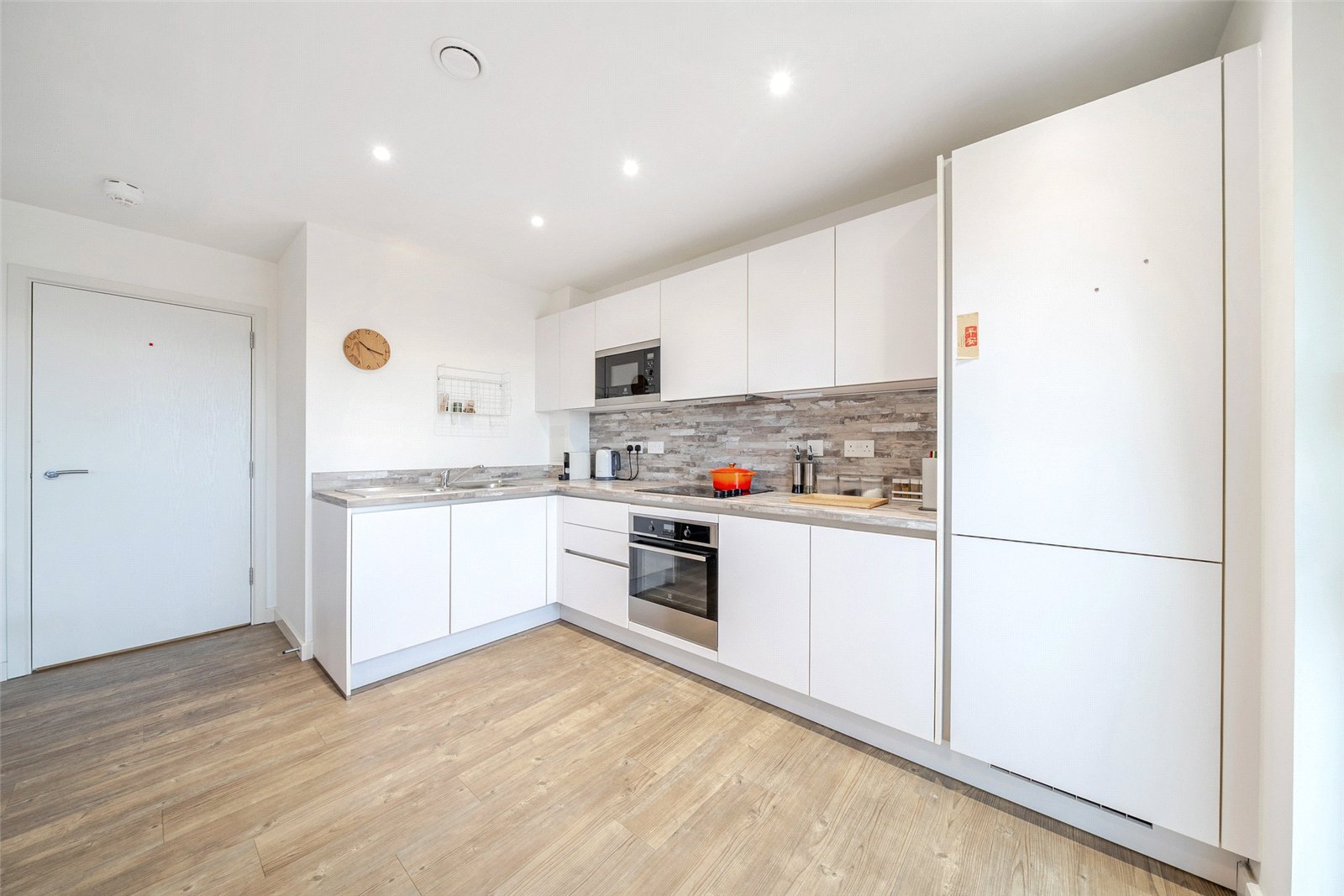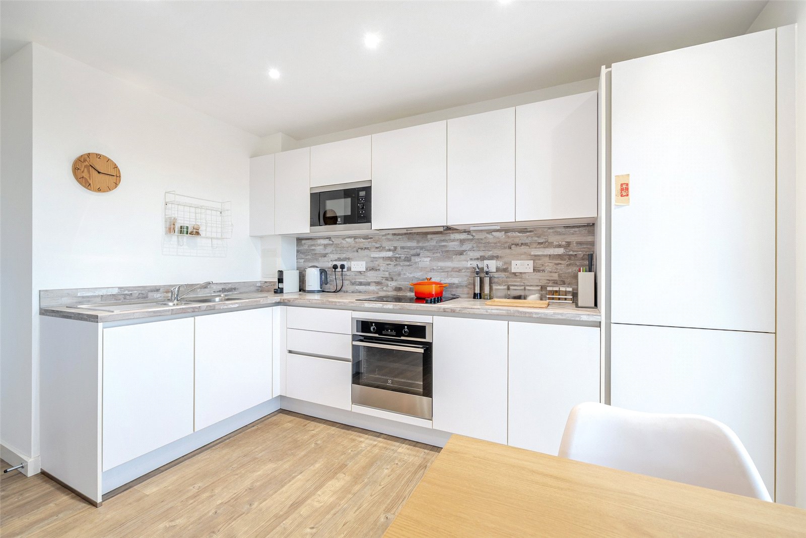 A dual-aspect fifth floor apartment in desirable Greenland Place. It has a sociable open-plan living area with full-width balcony, a beautifully appointed bathroom, underfloor heating and use of the onsite, residents’ gym and 24-hour concierge and shared rooftop garden. Chain free.