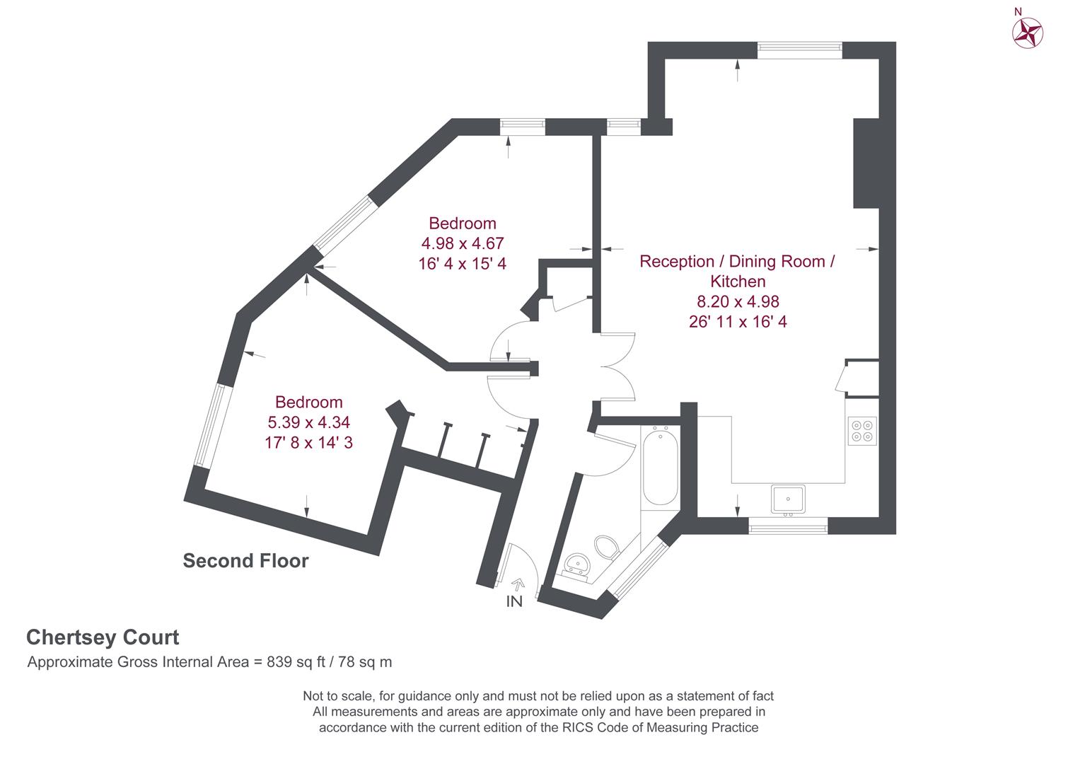 A simply exceptional two bedroom apartment offering more than 800 sqft of accommodation. This wonderfully light and spacious home has been remodelled by the current owners to provide two double bedrooms, a family bathroom and an exceptional 26ft open plan kitchen / living area. The property is located on the second floor and benefits from views across well maintained communal gardens at the rear. Chertsey Court is a popular block with the added benefit of lifts and off street residents' parking. It is conveniently placed for local bus services and amenities, with Mortlake station being a short walk away. "Outstanding" local schools are also in the vicinity. Lease and service charge information is available on request.