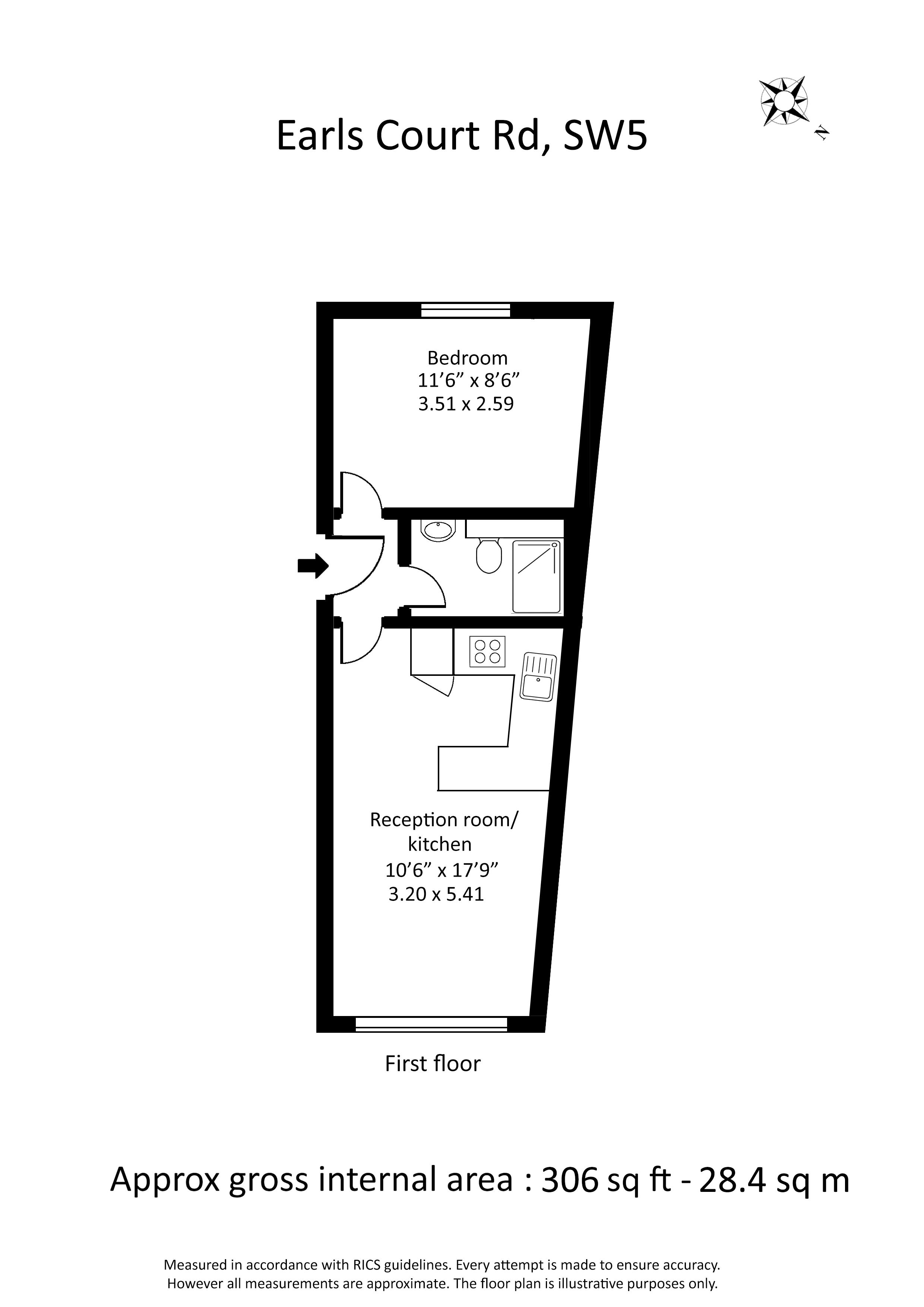 A fantastic opportunity to acquire spacious studio apartment on the top floor of this attractive white stucco fronted bu...