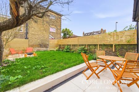 The landscaped rear garden has been thoughtfully designed with both dining and lawn areas — perfect for summer entertaining and children at play.