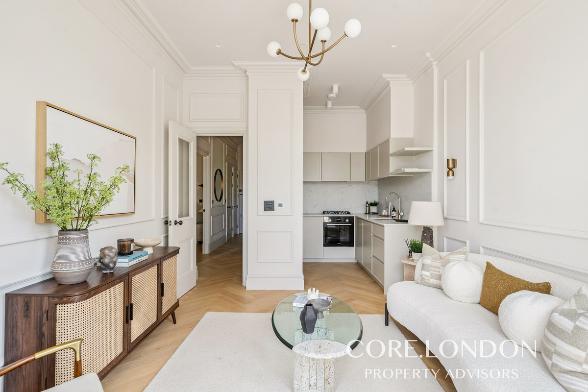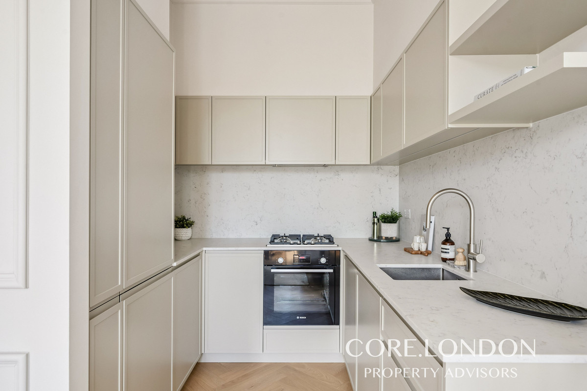 A newly converted two-bedroom apartment of around 1,000 sq ft, arranged over two floors within an elegant Edwardian buil...